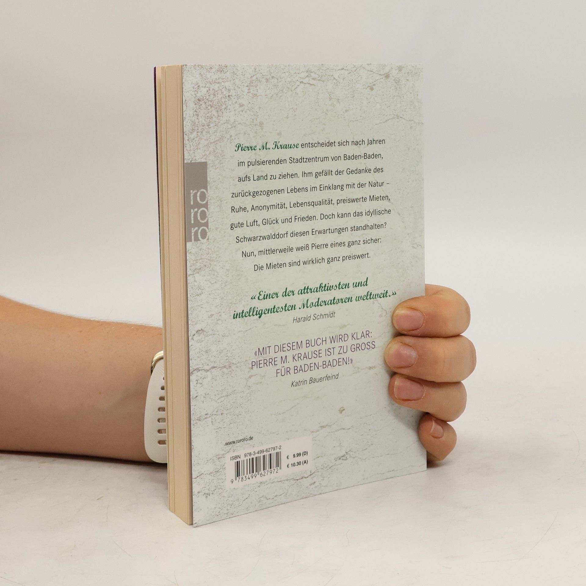 Pierre M. Krause entscheidet sich nach Jahren im pulsierenden Stadtzentrum von Baden-Baden, aufs Land zu ziehen. Ihm gefällt der Gedanke des zurückgezogenen Lebens im Einklang mit der Natur – Ruhe, Anonymität, Lebensqualität, preiswerte Mieten, gute Luft, Glück und Frieden. Doch kann das idyllische Schwarzwalddorf diesen Erwartungen standhalten? Nun, mittlerweile weiß Pierre eines ganz sicher: Die Mieten sind wirklich ganz preiswert. «Einer der attraktivsten und intelligentesten Moderatoren weltweit.» (Harald Schmidt) «Mit diesem Buch wird klar: Pierre M. Krause ist zu groß für Baden-Baden!» (Katrin Bauerfeind)