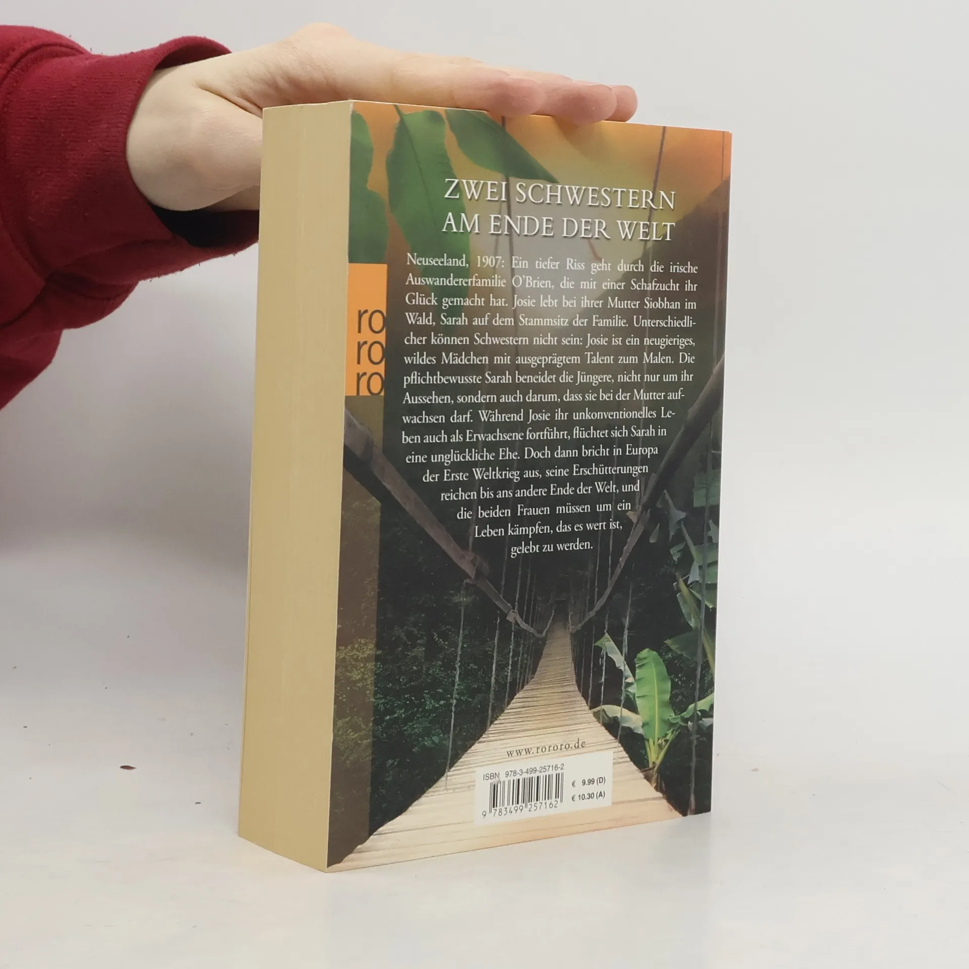 Zwei Schwestern am Ende der Welt. Neuseeland, 1907: Ein tiefer Riss geht durch die irische Auswandererfamilie O’Brien, die mit einer Schafzucht ihr Glück gemacht hat. Josie lebt bei ihrer Mutter Siobhan im Wald, Sarah auf dem Stammsitz der Familie. Unterschiedlicher können Schwestern nicht sein: Josie ist ein neugieriges, wildes Mädchen mit ausgeprägtem Talent zum Malen. Die pflichtbewusste Sarah beneidet die Jüngere, nicht nur um ihr Aussehen, sondern auch darum, dass sie bei der Mutter aufwachsen darf. Während Josie ihr unkonventionelles Leben auch als Erwachsene fortführt, flüchtet sich Sarah in eine unglückliche Ehe. Doch dann bricht in Europa der Erste Weltkrieg aus, seine Erschütterungen reichen bis ans andere Ende der Welt, und die beiden Frauen müssen um ein Leben kämpfen, das es wert ist, gelebt zu werden.