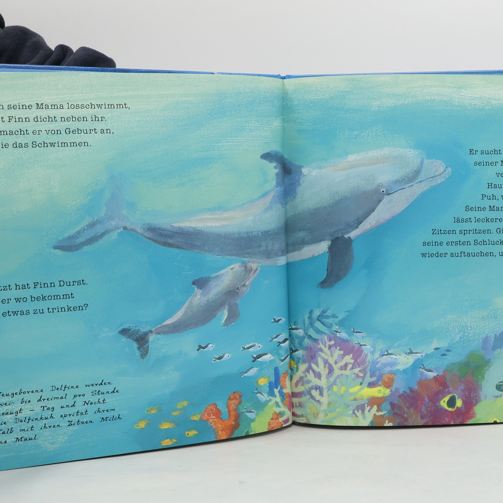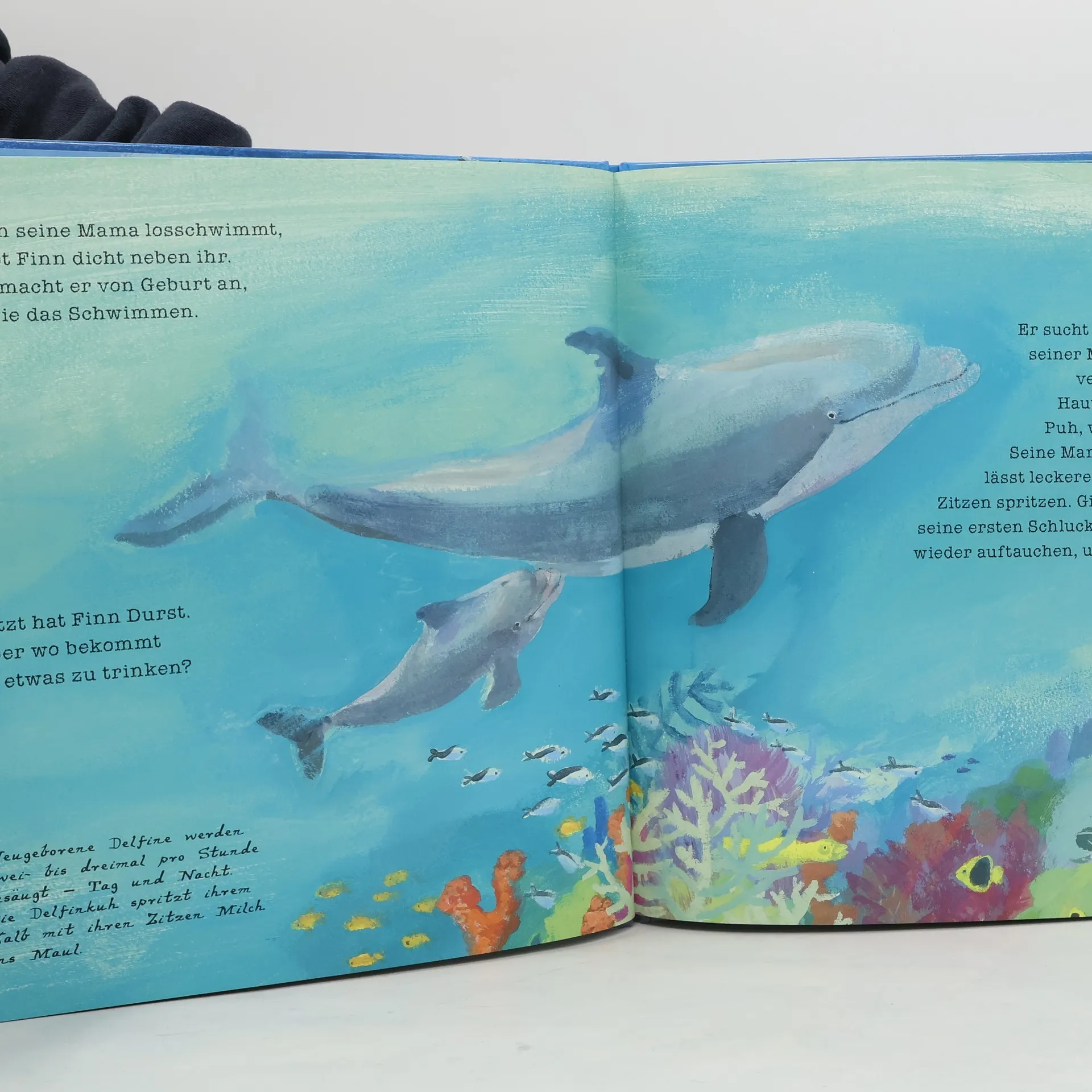 Schwups, da ist er! Mit dem Schwanz voran kommt der kleine Delfin Finn zur Welt- und ist schon als Baby über einen Meter groß! Doch bis er erwachsen ist, muss er noch so vieles lerne. Gut, dass seine Mama ihm dabei hilft Ab 4 Jahre
