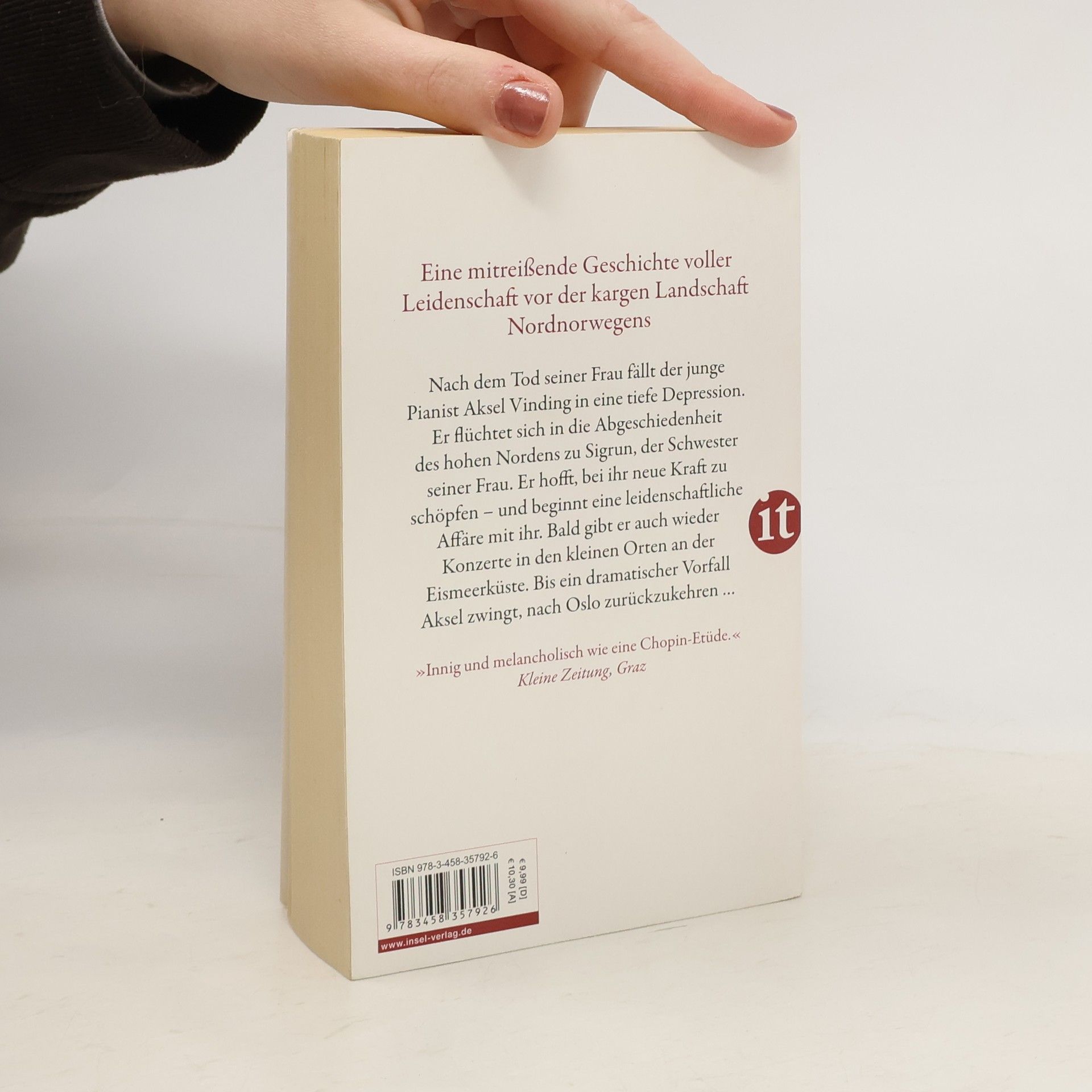 Nach dem Tod seiner Frau fällt Aksel Vinding in eine tiefe Depression. Der junge, sensible Pianist sagt eine geplante Konzerttournee ab und flüchtet sich in die Abgeschiedenheit des hohen Nordens zu Sigrun, der Schwester seiner Frau. Er hofft, bei ihr, inmitten der rauhen Polarlandschaft, neue Kraft zu schöpfen. Seine Trauer versucht er, mit Alkohol und seiner Musik zu bewältigen. Bald gibt er wieder Konzerte in den kleinen Orten an der Eismeerküste – und er stürzt sich in eine leidenschaftliche Affäre mit seiner Schwägerin. Bis ein dramatischer Vorfall seiner Zeit im Norden ein jähes Ende setzt und Aksel zwingt, nach Oslo zurückzukehren …