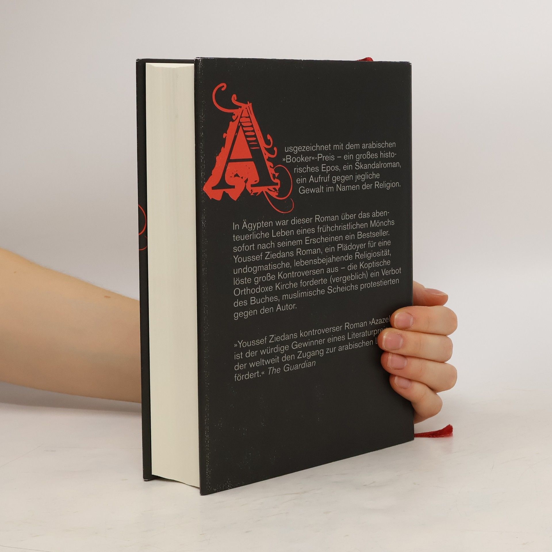 Der Skandalroman aus Ägypten ist ein Plädoyer gegen Gewalt im Namen der Religion und wurde in Ägypten sofort nach seinem Erscheinen ein Bestseller. Youssef Ziedans Werk, das für eine undogmatische, lebensbejahende Religiosität eintritt, löste große Kontroversen aus. Die Koptische Orthodoxe Kirche forderte vergeblich ein Verbot, während muslimische Scheichs gegen den Autor protestierten. Der koptische Mönch Hypa, der ein abenteuerliches Leben führte, schreibt seine Erinnerungen nieder, um Rechenschaft über seine eigenen Verfehlungen und die der frühchristlichen Kirche abzulegen. Geboren im südlichen Ägypten, wuchs er mit dem Glauben an alte ägyptische Götter auf. Als junger Mönch studierte er Medizin und geriet in die theologischen Auseinandersetzungen des fünften Jahrhunderts. In Alexandria wird ihm die grausame Gewalt der Christen bewusst, während er in den Höhlen am Toten Meer um Erleuchtung betet. In Jerusalem trifft er Bischof Nestorius, der wegen theologischer Differenzen exkommuniziert wird. In einem abgelegenen Bergkloster zwischen Antiochia und Aleppo dokumentiert er seine Erlebnisse. Dabei spielen auch Oktavia, die schöne alexandrinische Heidin, und Martha, eine junge christliche Chorsängerin, eine Rolle, sowie Azazel, der Teufel, der ihn zum Zweifeln und Sündigen verleitet und behauptet, ein Teil von Hypa selbst zu sein.