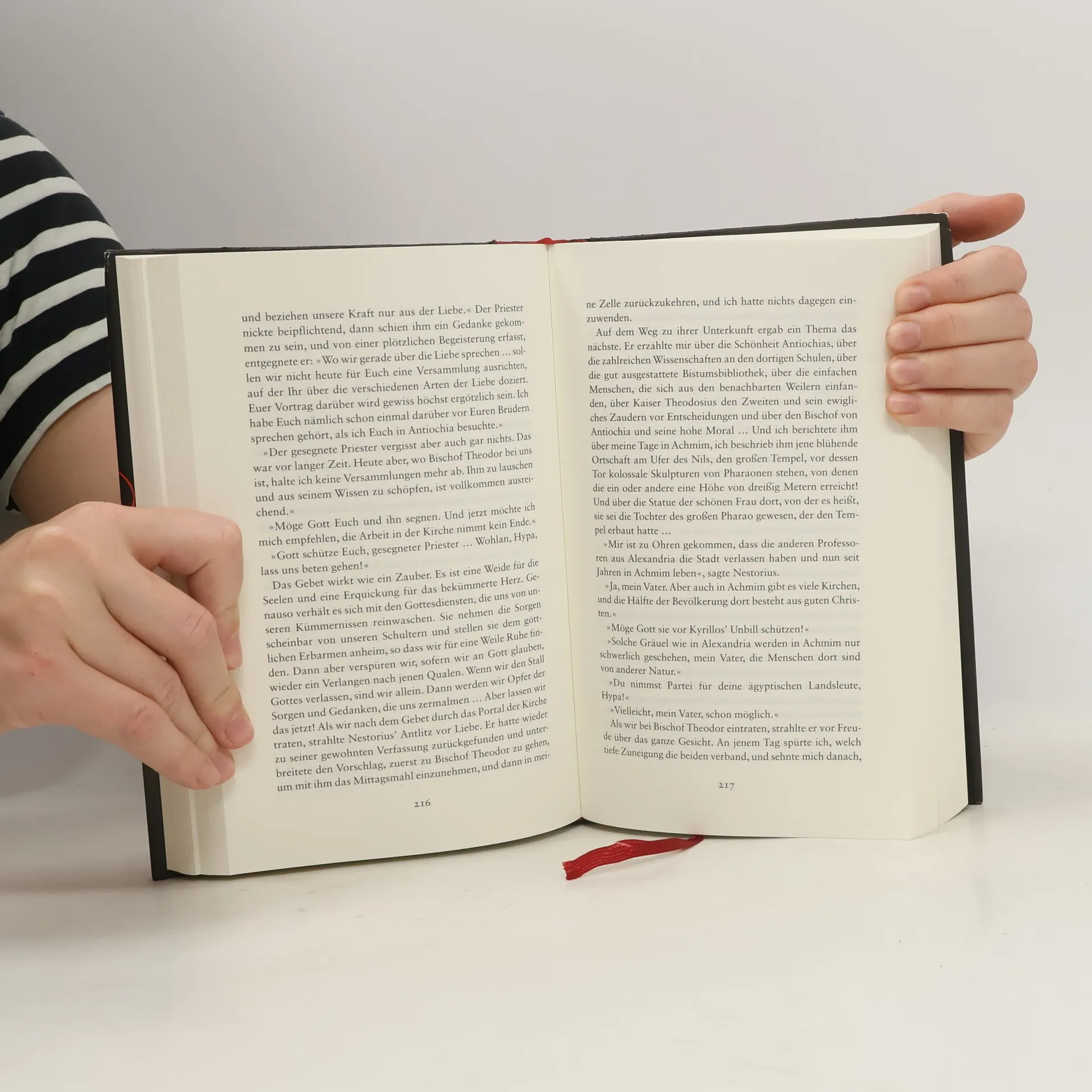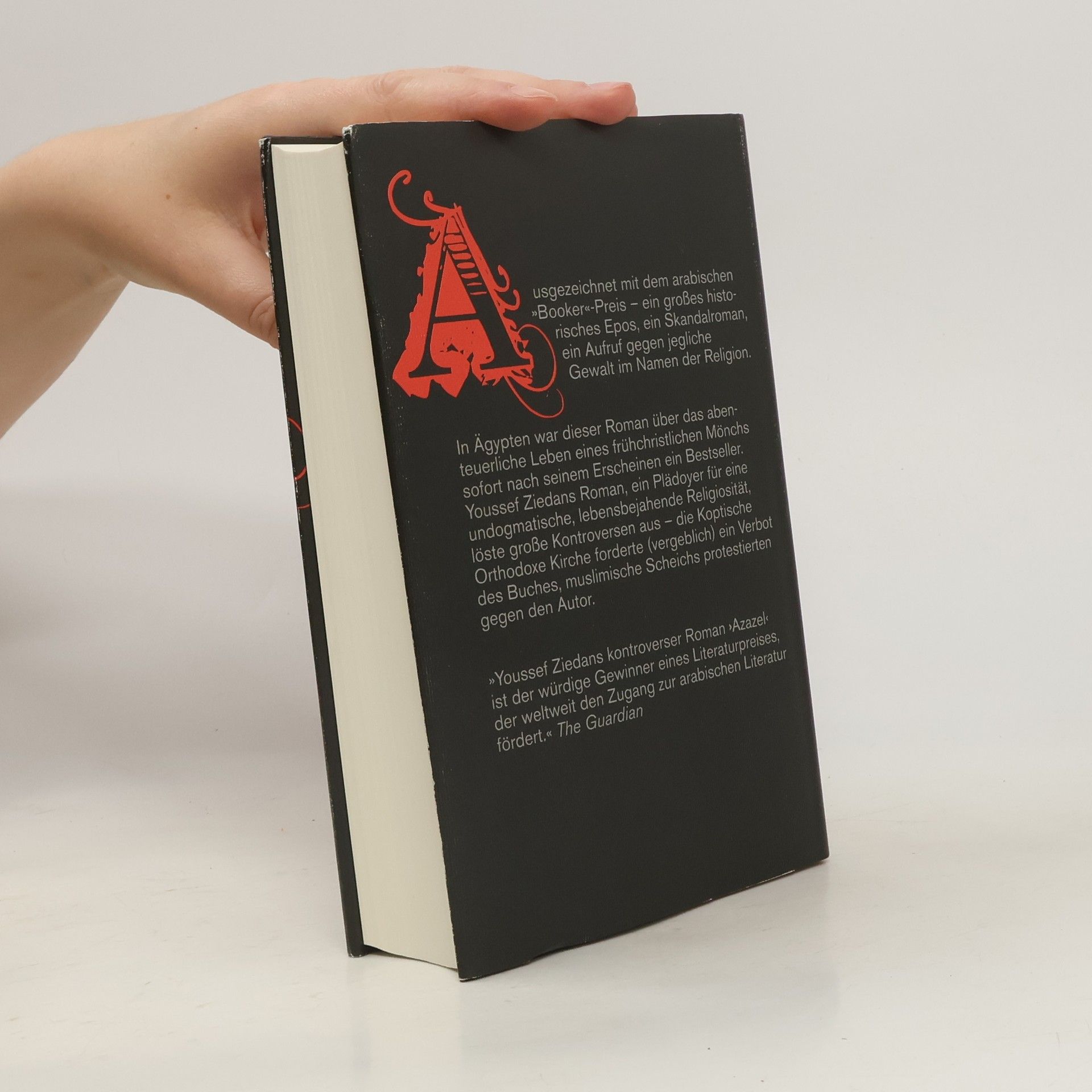 Der Skandalroman aus Ägypten ist ein Plädoyer gegen Gewalt im Namen der Religion und wurde in Ägypten sofort nach seinem Erscheinen ein Bestseller. Youssef Ziedans Werk, das für eine undogmatische, lebensbejahende Religiosität eintritt, löste große Kontroversen aus. Die Koptische Orthodoxe Kirche forderte vergeblich ein Verbot, während muslimische Scheichs gegen den Autor protestierten. Der koptische Mönch Hypa, der ein abenteuerliches Leben führte, schreibt seine Erinnerungen nieder, um Rechenschaft über seine eigenen Verfehlungen und die der frühchristlichen Kirche abzulegen. Geboren im südlichen Ägypten, wuchs er mit dem Glauben an alte ägyptische Götter auf. Als junger Mönch studierte er Medizin und geriet in die theologischen Auseinandersetzungen des fünften Jahrhunderts. In Alexandria wird ihm die grausame Gewalt der Christen bewusst, während er in den Höhlen am Toten Meer um Erleuchtung betet. In Jerusalem trifft er Bischof Nestorius, der wegen theologischer Differenzen exkommuniziert wird. In einem abgelegenen Bergkloster zwischen Antiochia und Aleppo dokumentiert er seine Erlebnisse. Dabei spielen auch Oktavia, die schöne alexandrinische Heidin, und Martha, eine junge christliche Chorsängerin, eine Rolle, sowie Azazel, der Teufel, der ihn zum Zweifeln und Sündigen verleitet und behauptet, ein Teil von Hypa selbst zu sein.
