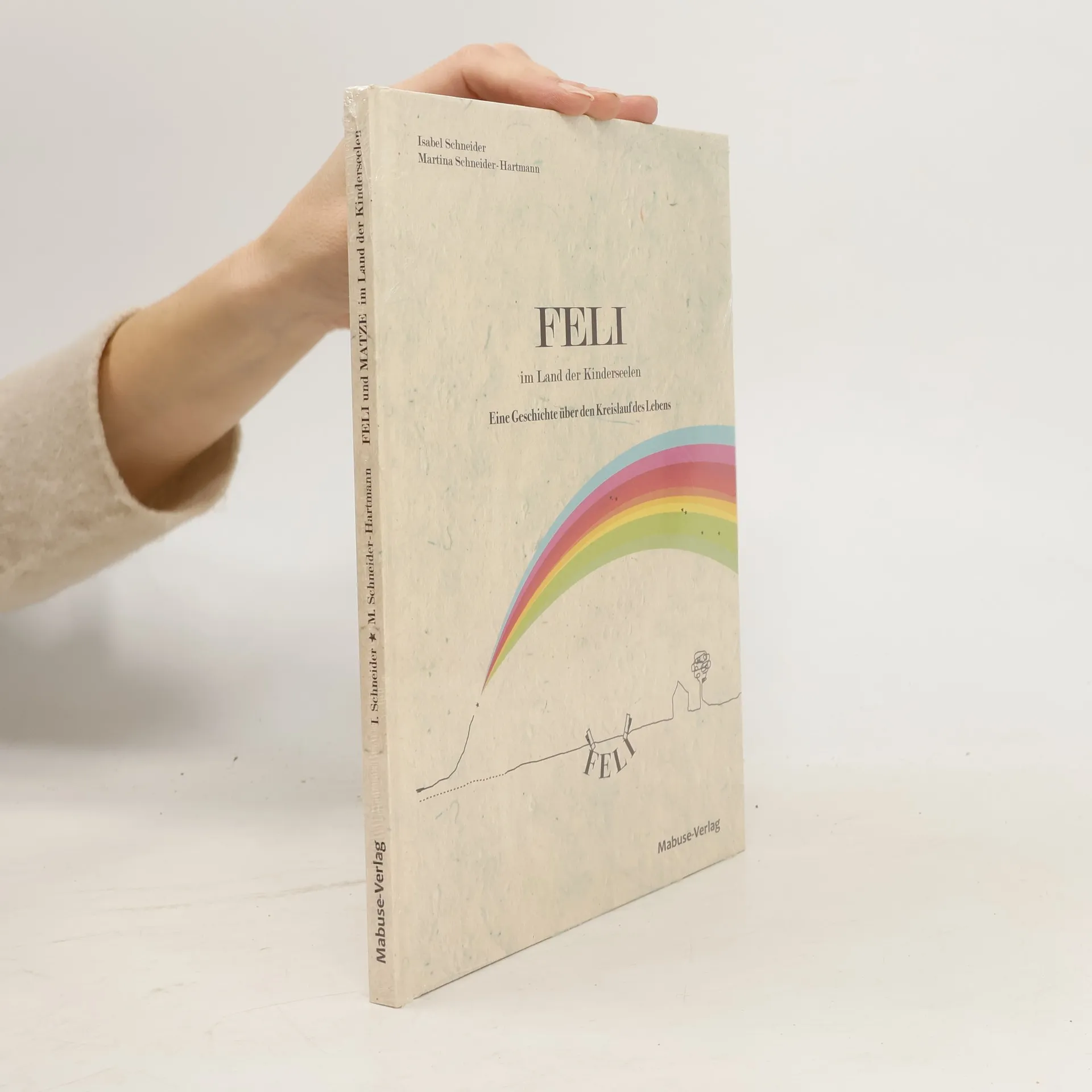 Schon sehr junge Kinder wollen wissen, „wo wir herkommen“ oder „wo wir hingehen, wenn unser Körper stirbt“. Mit viel Lust am Fabulieren findet Isabel Schneider anrührende und lustige Antworten auf diese Fragen: Sie erzählt von Feli und Matze, zwei Kinderseelen aus dem Land über dem Regenbogen. Sie haben sich dazu entschlossen, die Reise auf die Erde anzutreten, um dort ein Leben zu verbringen. Aber so einfach ist das nicht, denn vorher müssen beide dafür ausgerüstet werden. Das in zwei Richtungen zu lesende Wendebuch nähert sich den Themen Sterben und Tod mit liebevollen Illustrationen, Leichtigkeit und Freude. Es macht Spaß, spendet Trost und Hoffnung. Eine einzigartige Unterstützung für die therapeutische Arbeit und ein großes Lesevergnügen für Jung und Alt. Für Kinder ab 6 Jahren