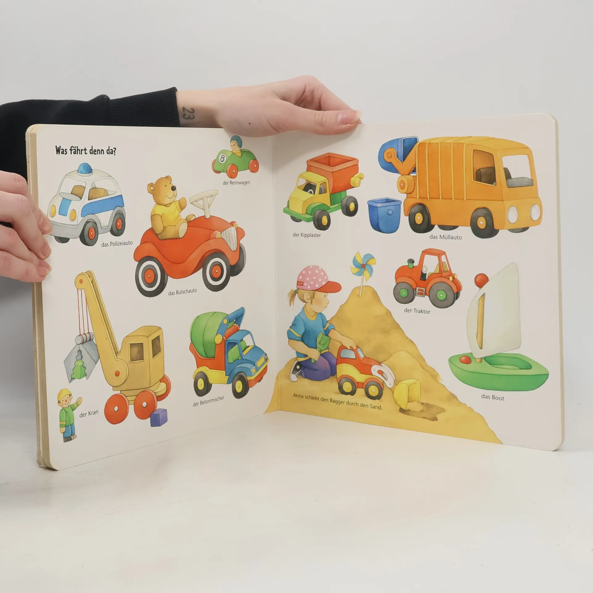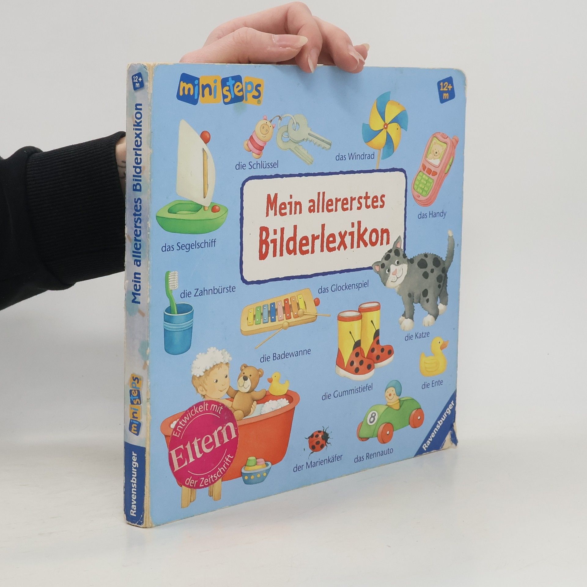 Bilder auf weissem Hintergrund stellen Gegenstände und Personen vor, gegliedert nach Themen: äIch ziehe mich anä, äMeine liebsten Spielsachenä, äAll meine Farbenä u.m.