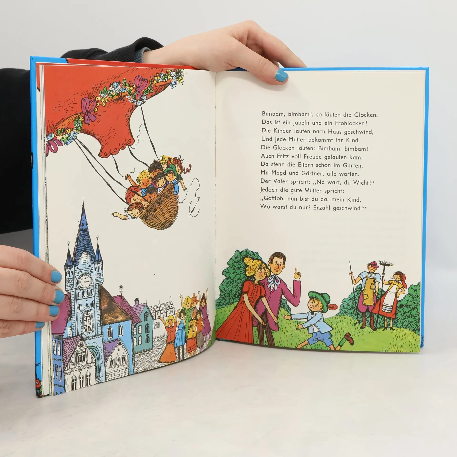 In der Nähe eines kleinen Dorfes am Waldesrand lebt der „Kleine Fritz“, der es liebt, durch Wald und Feld zu streifen, trotz der Warnungen seiner Mutter, in der Nähe zu bleiben. Eines Tages verdunkelt ein riesiger roter Ballon die Sonne, und Fritz entdeckt einen Pfeife rauchenden Mann darin – den Zauberer Hatschi Bratschi aus dem Morgenland, der Kinder fangen will. Bevor Fritz fliehen kann, wird er gefangen und in den Ballonkorb gezerrt. Trotz seiner verzweifelten Versuche, sich zu befreien, hält Hatschi Bratschi ihn fest. Während der Ballon über das Dorf schwebt, sucht der Zauberer mit einem Fernrohr nach weiteren Kindern, bis er sich zu weit nach vorne beugt und in einen tiefen Brunnen fällt. Fritz nutzt die Gelegenheit und fliegt mit dem Ballon davon. Auf seiner Reise wird er von köstlichem Bratenduft angelockt, ohne die Hexe Kniesebein zu bemerken, die versucht, den Ballon festzuhalten. Doch sie kann ihr Gewicht nicht halten und landet auf einem Schlot. Fritz setzt seine Reise fort, überwindet Berge und Täler und erreicht schließlich das blaue Meer sowie das Haus des Zauberers. Dort wird er zum neuen Herrscher und befreit alle entführten Kinder. Gemeinsam kehren sie im Luftballon nach Hause zurück, wo sie von ihren Eltern sehnsüchtig erwartet werden.