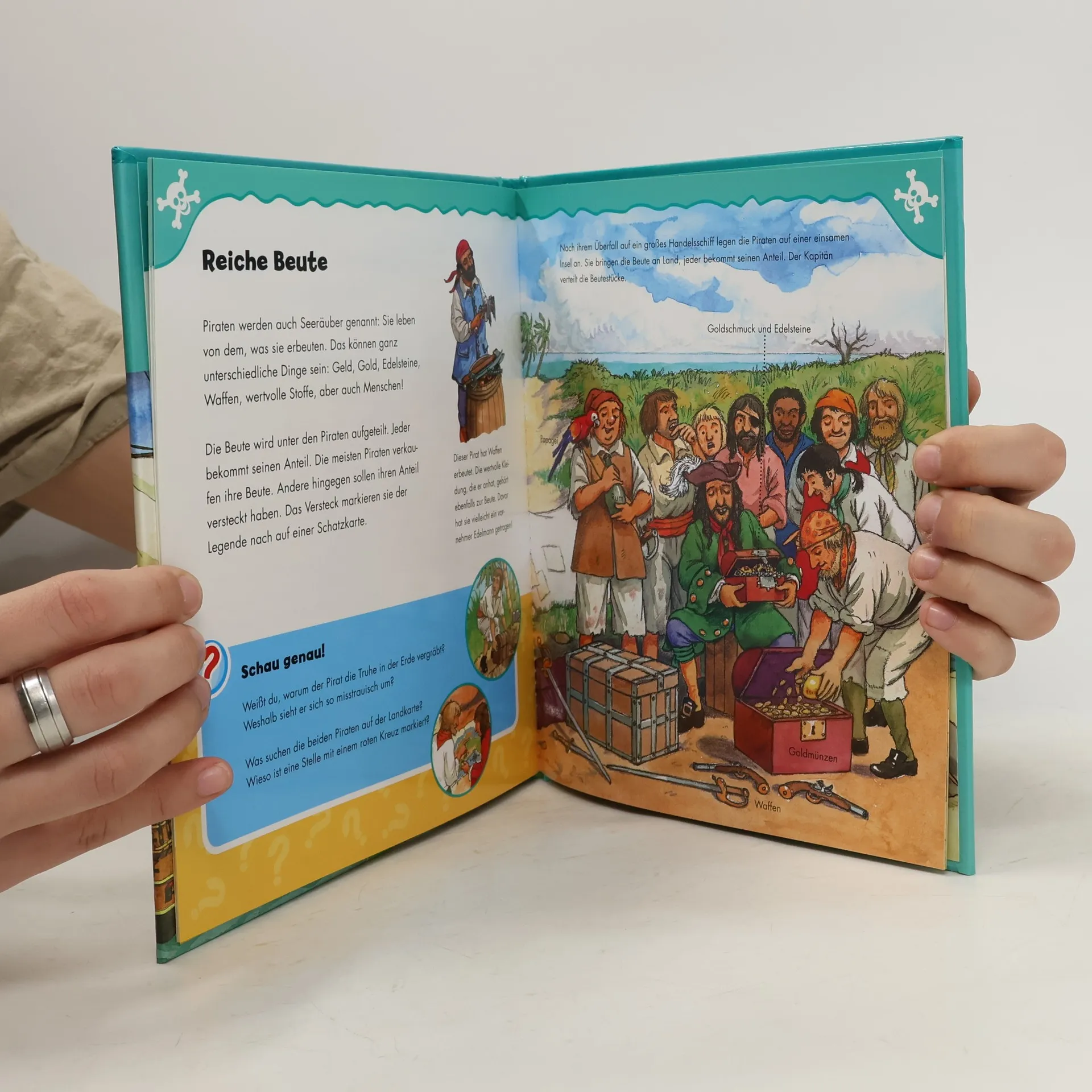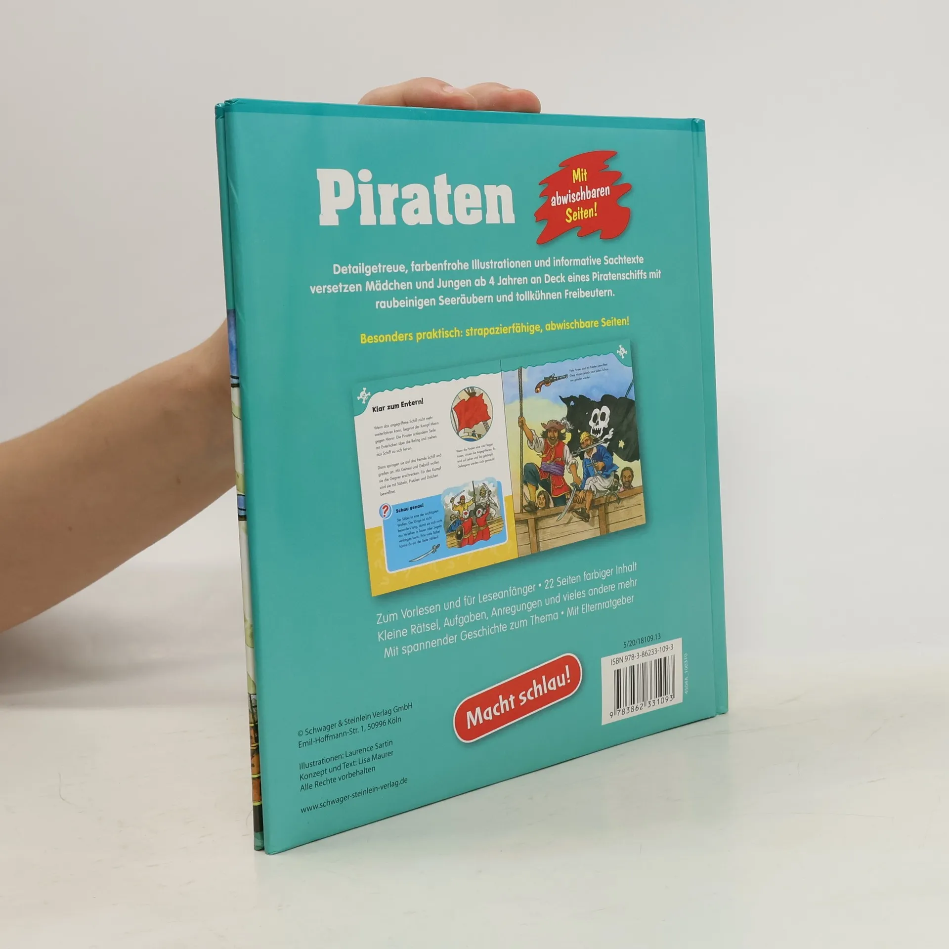 Entdecke die Welt der Piraten! Detailgetreue, farbenfrohe Illustrationen und informative Sachtexte versetzen Mädchen und Jungen ab 4 Jahren an Deck eines Piratenschiffs mit raubeinigen Seeräubern und tollkühnen Freibeutern. Besonders praktisch: strapazierfähige, abwischbare Seiten! Zum Vorlesen und für Leseanfänger - kleine Rätsel, Aufgaben, Anregungen und vieles andere mehr - mit spannender Geschichte zum Thema - mit Elternratgeber