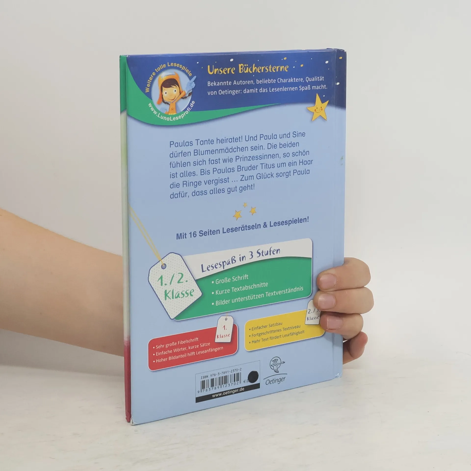 Paulas allerschönster Tag! Ein Mädchentraum geht in Erfüllung. Paulas Tante heiratet! Und was noch besser ist: Paula und Sine dürfen Blumenmädchen sein. Endlich kommt der große Tag, und die Mädchen fühlen sich fast wie Prinzessinnen im Märchen, so schön ist alles. Nur Paulas Bruder Titus vergisst um ein Haar die Ringe, aber zum Glück hat er ja seine Schwester, die dafür sorgt, dass am Altar nichts mehr schief geht. Autorin Ursel Scheffler erzählt in diesem Band aus der beliebten Paula-Reihe lustig, liebenswert und frei von jedem Kitsch, eben typisch Paula! Lesen lernen mit "Büchersterne" für die 1./2. Klasse: Große Schrift Kurze Textabschnitte Viele Bilder, die das Textverständnis von Leseanfängern unterstützen 16 Seiten Leserätsel und Lesespiele im Anhang Bekannte Autoren und beliebte Charaktere, damit das Lesenlernen Spaß macht