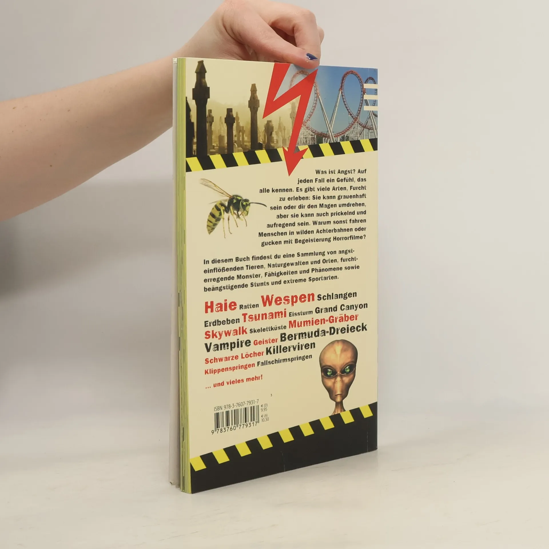 Bissige Tiere, tödliche Naturgewalten, unheimliche Orte und grauenvolle Kreaturen: Dieses Buch ist definitiv nichts für Hasenfüße! Die furchterregendsten Dinge nehmen hier Gestalt an, jede Seite wird zum Albtraum mit Gänsehaut-Garantie. Doch dabei stellt sich auch das berühmte, schaurig-schöne Kribbeln ein. Und eigentlich ist es ja auch alles ganz ungefährlich - solange man „nur“ liest…
