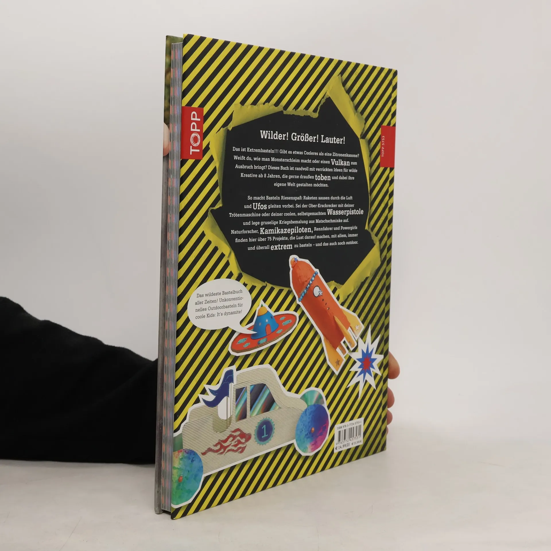 Extrembasteln. Nichts ist vor uns sicher! Verrückte Ideen für wilde Kreative ab 8 Jahren. Über 65 Projekte zum Outdoor-Basteln. Mit Monsterschleim, Trötenmaschine, Zitronenkanone und magischem Licht. Ab 8 Jahren. 132 Seiten, 21,5 x 28,7 cm, Hardcover, mit verdeckter Spiralbindung und rundem Rücken