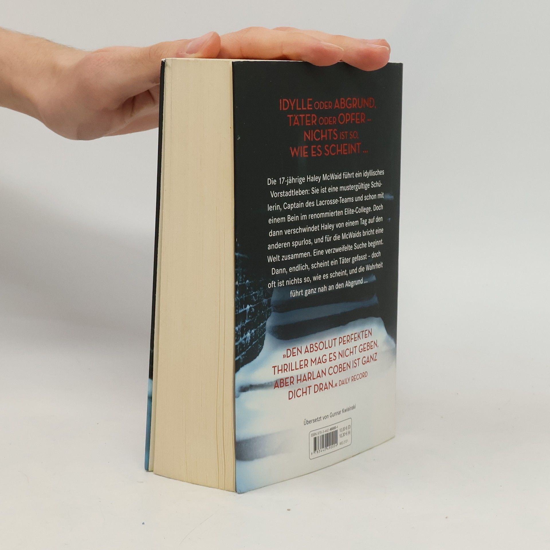 Idylle oder Abgrund, Täter oder Opfer – nichts ist so, wie es scheint ... Die 17-jährige Haley McWaid führt ein idyllisches Vorstadtleben: Sie ist eine mustergültige Schülerin, Captain des Lacrosse-Teams und schon mit einem Bein in einem renommierten Elite-College. Doch dann verschwindet Haley von einem Tag auf den anderen spurlos, und für die McWaids bricht eine Welt zusammen. Eine verzweifelte Suche beginnt. Schließlich ist es der Zufall, der Fernsehreporterin Wendy Tynes auf eine Spur führt: Ein Sozialarbeiter wird als Täter gebrandmarkt. Doch Wendy selbst kommen Zweifel – und in der Vorstadtidylle tun sich Abgründe auf, in denen nichts so ist, wie es scheint ...