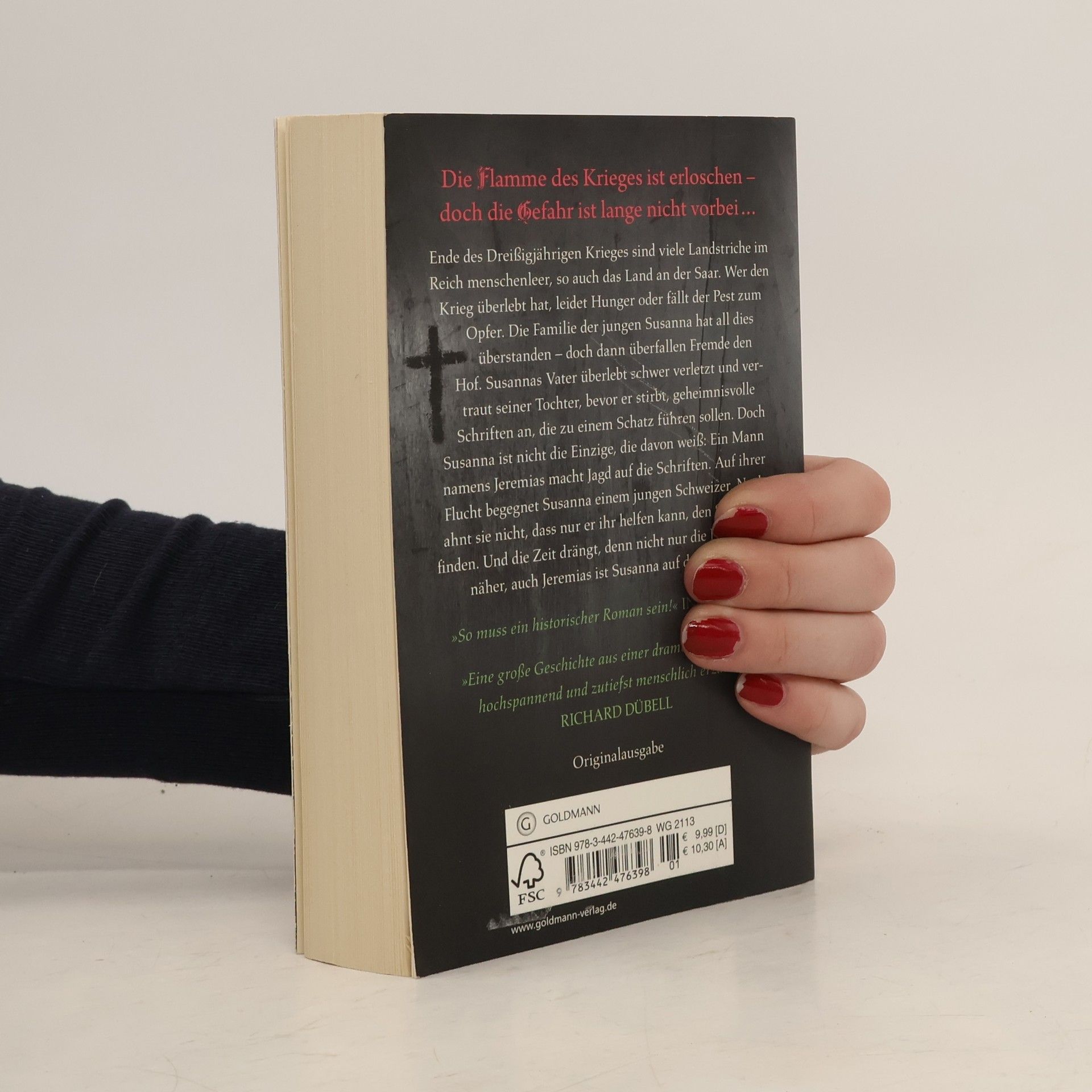 Die Flamme des Krieges ist erloschen – doch die Gefahr ist lange nicht vorbei … Ende des Dreißigjährigen Krieges sind viele Landstriche im Reich menschenleer – so auch das Land an der Saar. Wer den Krieg überlebt hat, leidet Hunger oder fällt der Pest zum Opfer. Die Familie der jungen Susanna hat all dies überstanden – doch dann überfallen Fremde den Hof. Nur Susannas Vater überlebt schwer verletzt und vertraut seiner Tochter bevor er stirbt geheimnisvolle Schriften an, die zu einem Schatz führen sollen. Doch Susanna ist nicht die Einzige, die davon weiß: Ein Mann namens Jeremias ist versessen auf den Schatz und macht Jagd auf das Mädchen. Auf ihrer Flucht begegnet Susanna einem jungen Schweizer, der auf der Durchreise ist. Noch ahnt sie nicht, dass er der Einzige ist, der ihr helfen kann, den Schatz zu finden. Und die Zeit drängt, denn nicht nur die Pest kommt näher, auch Jeremias ist ihr auf der Spur …
