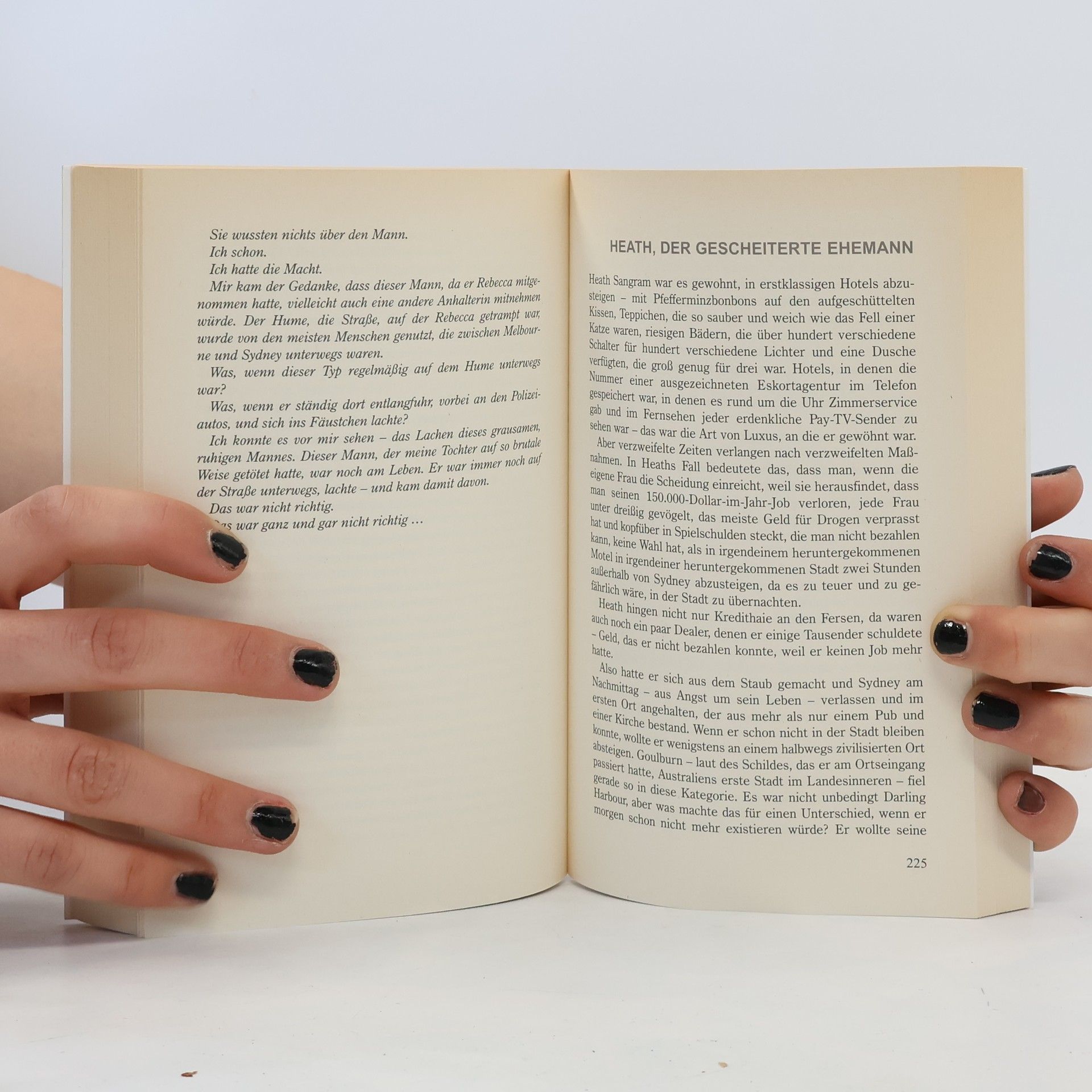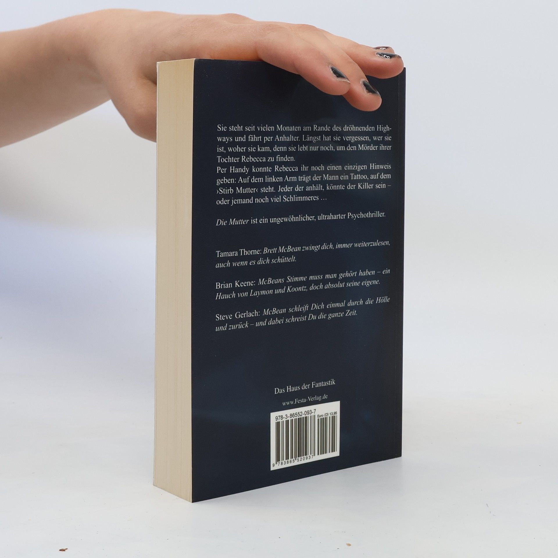 Sie steht seit vielen Monaten am Rande des dröhnenden Highways und fährt per Anhalter. Sie steigt nur bei Männern ein. Längst hat sie vergessen, wer sie ist, woher sie kam, denn sie lebt nur noch, um den Mörder ihrer Tochter Rebecca zu finden.Per Handy konnte Rebecca ihr noch einen einzigen Hinweis geben: Auf dem linken Arm trägt der Mann ein Tattoo, auf dem 'Stirb Mutter' steht.Jeder Fahrer der anhält könnte der Killer sein - oder jemand noch viel Schlimmeres
