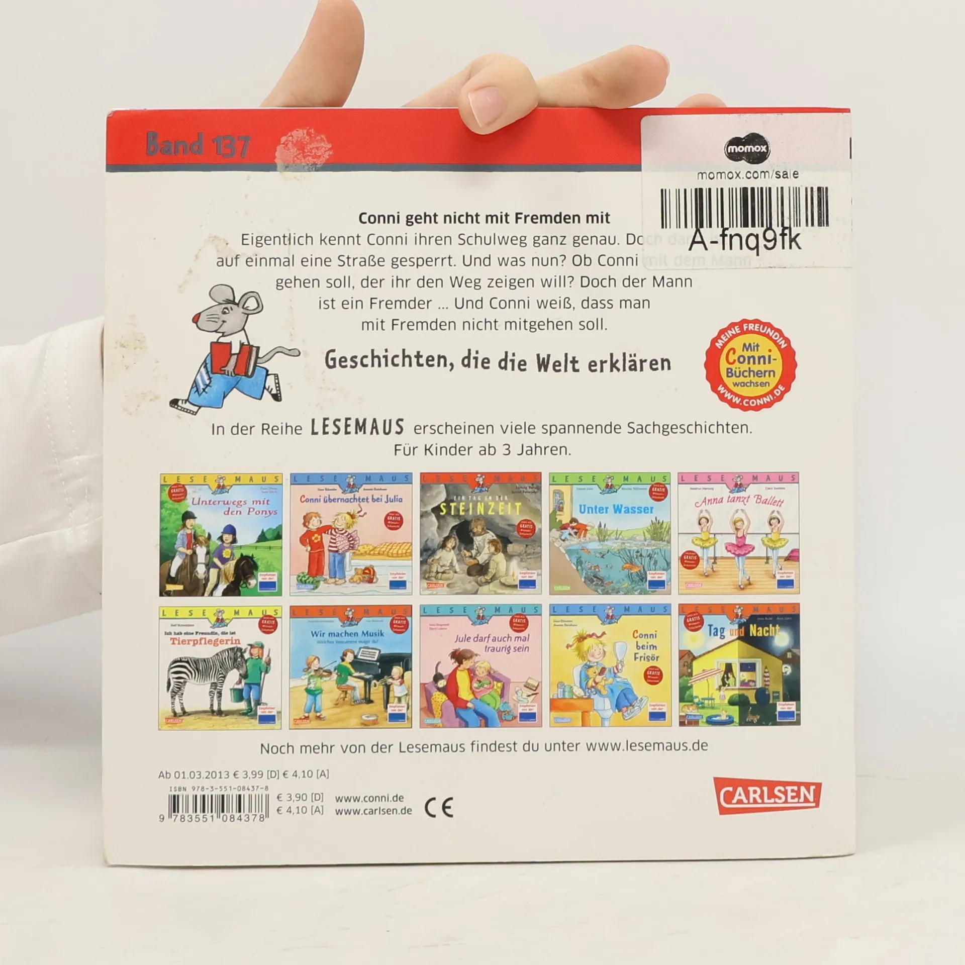 Eigentlich kennt Conni ihren Schulweg ganz genau. Doch dann ist auf einmal eine Straße gesperrt. Und was nun? Ob Conni mit dem Mann gehen soll, der ihr den Weg zeigen will? Doch der Mann ist ein Fremder ... Und Conni weiß, dass man mit Fremden nicht mitgehen soll. Und dass es richtig ist, laut „Nein“ zu sagen, wenn man etwas nicht will. LESEMAUS – Geschichten, die die Welt erklären! Die Bilderbücher für Kinder ab 3 Jahren sind ideal zum gemeinsamen Anschauen und Vorlesen. Verständliche Texte und hochwertige Illustrationen vermitteln wichtige Themen aus dem Kinderalltag. Empfohlen von der Stiftung Lesen.