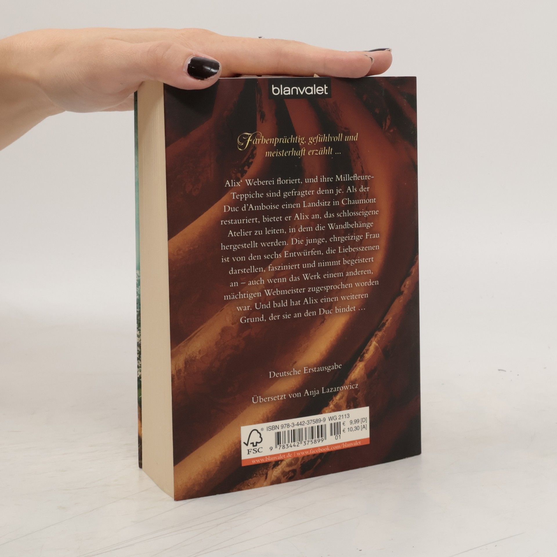 Alix’ Teppichweberei floriert und ihre Millefleure-Teppiche sind gefragter denn je. Als der Duc d’Amboise seinen Landsitz in Chaumont restauriert, bietet er Alix an, das schlosseigene Atelier zu leiten, in dem die Wandbehänge hergestellt werden. Die junge, ehrgeizige Frau ist von den sechs Entwürfen, die Liebesszenen darstellen, fasziniert und nimmt begeistert an – auch wenn das Werk einem anderen, mächtigen Webmeister zugesprochen worden war. Und bald hat Alix einen weiteren Grund, der sie an den Duc bindet: Sie verliebt sich in ihn …