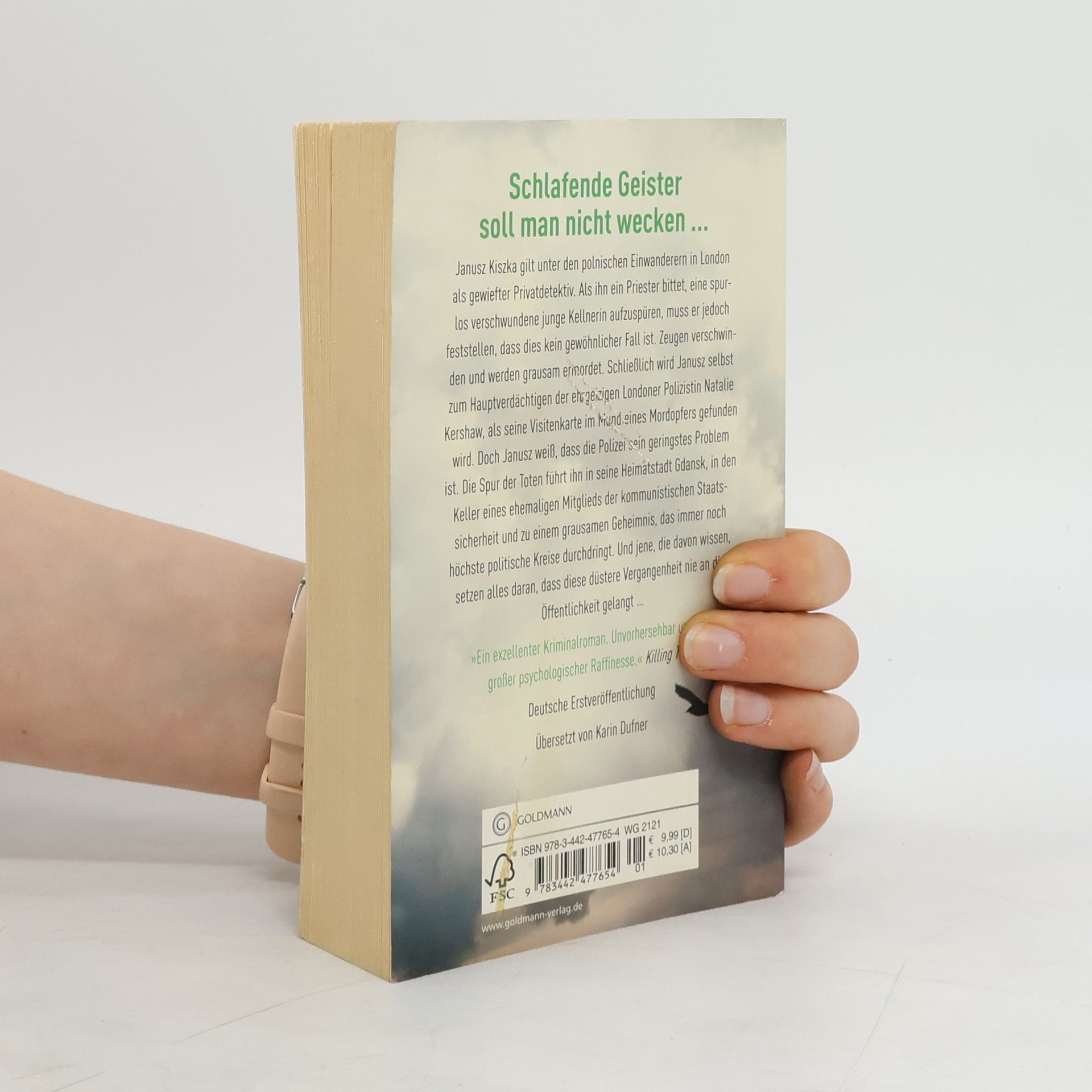Schlafende Geister soll man nicht wecken. Die junge Londoner Polizistin Natalie Kershaw steht vor ihrem ersten Mordfall, als eine Frauenleiche aus der Themse geborgen wird. Und es bleibt nicht bei einem Opfer. Gleichzeitig wird der polnische Privatdetektiv Janusz Kiszka gebeten, eine verschwundene, junge Kellnerin zu suchen. Schnell muss er feststellen, dass dies kein gewöhnlicher Vermisstenfall ist. Zeugen verschwinden und werden grausam ermordet. Als im Mund eines weiteren Mordopfers Janusz’ Visitenkarte gefunden wird, erkennt er, dass er einen mächtigen, zu allem entschlossenen Gegner herausgefordert hat.