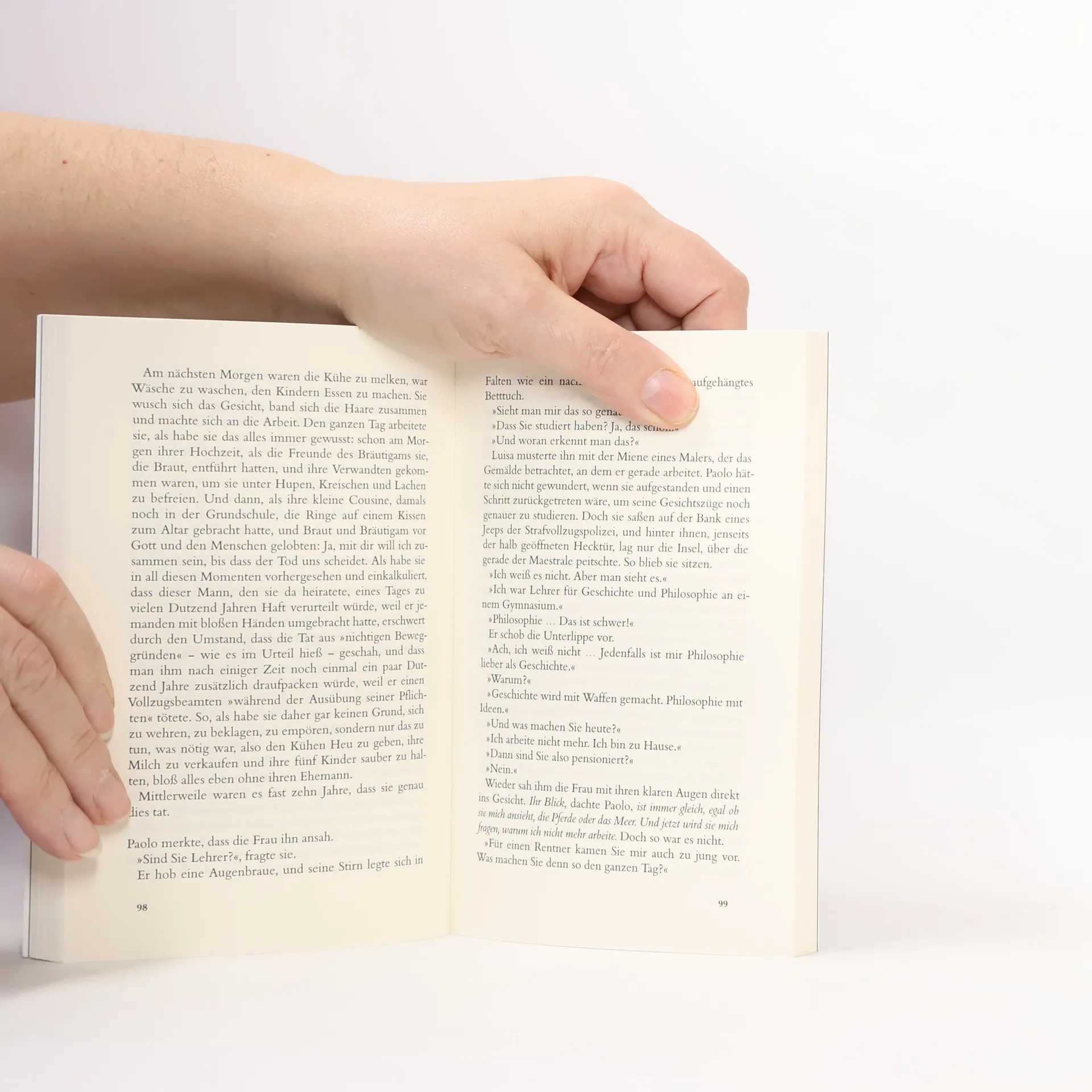 Im Jahr 1979 begegnen sich zwei Menschen, die scheinbar nichts miteinander gemein haben, auf einer italienischen Gefängnisinsel: Luisa, eine Bergbäuerin, die ihre fünf Kinder allein großzieht, weil ihr Mann seinen Jähzorn nicht unter Kontrolle hatte, und Paolo, ein ehemaliger Lehrer, der nach wie vor nicht versteht, wie sein einziger Sohn zu einem Terroristen werden konnte. Beide sind gekommen, um ihre Angehörigen zu besuchen. Luisa hat ihrem Mann Ravioli mitgebracht, damit er sie unter den Mithäftlingen verteilen kann. Paolo hofft darauf, überhaupt wieder eine Beziehung zu seinem Sohn herzustellen. Doch das Wiedersehen verläuft für beide enttäuschend und demütigend. Ein aufkommender Sturm zwingt sie, auf der Insel zu bleiben, und so beginnen sie zu sprechen. Die Bedeutung dieser Begegnung wird ihnen allerdings erst viele Jahre später bewusst werden …