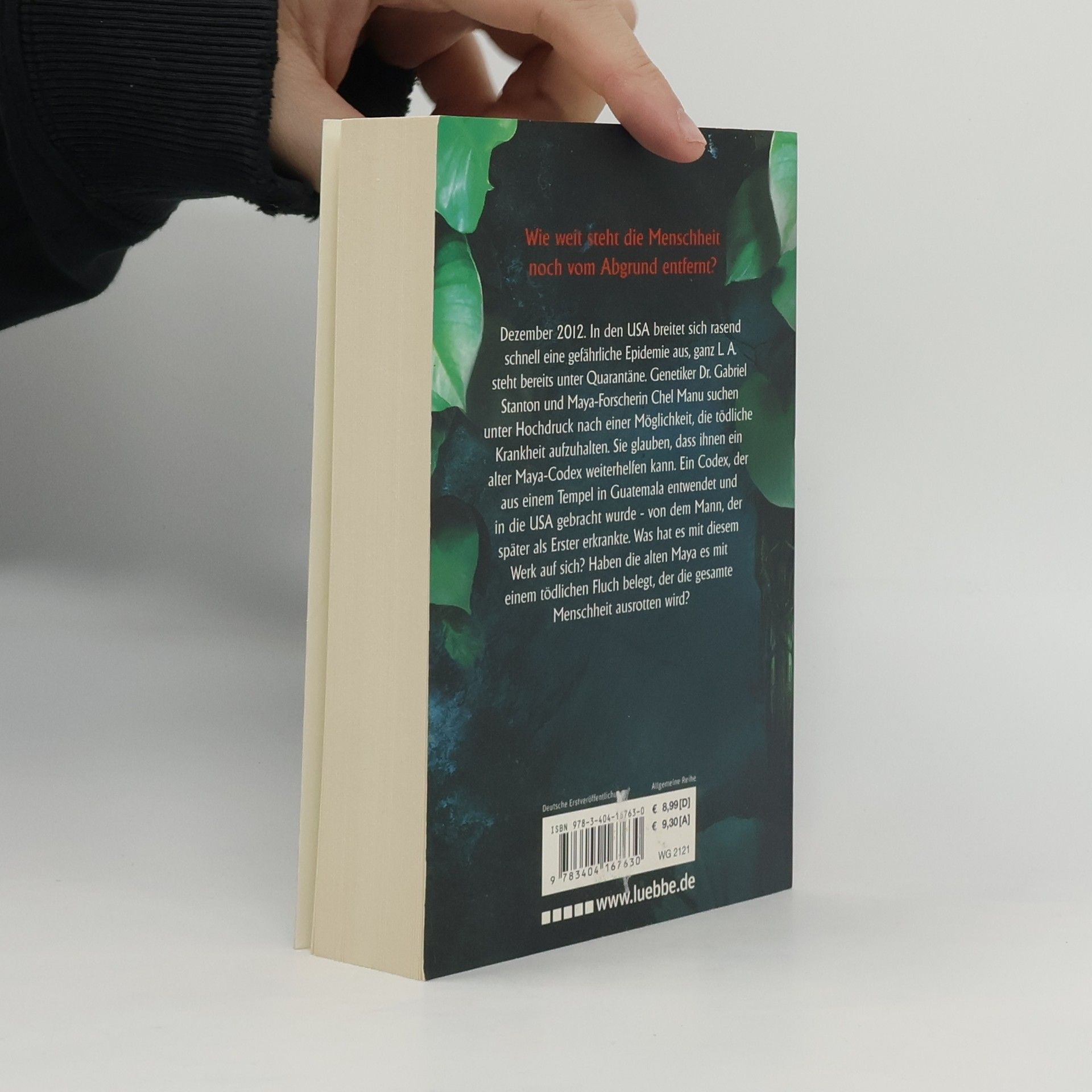 Dezember 2012. In den USA breitet sich rasend schnell eine gefährliche Epidemie aus, ganz L. A. steht bereits unter Quarantäne. Genetiker Dr. Gabriel Stanton und Maya-Forscherin Chel Manu suchen unter Hochdruck nach einer Möglichkeit, die tödliche Krankheit aufzuhalten. Sie glauben, dass ihnen ein alter Maya-Codex weiterhelfen kann. Ein Codex, der aus einem Tempel in Guatemala entwendet und in die USA gebracht wurde - von dem Mann, der später als Erster erkrankte. Was hat es mit diesem Werk auf sich? Haben die alten Maya es mit einem tödlichen Fluch belegt, der die gesamte Menschheit ausrotten wird?