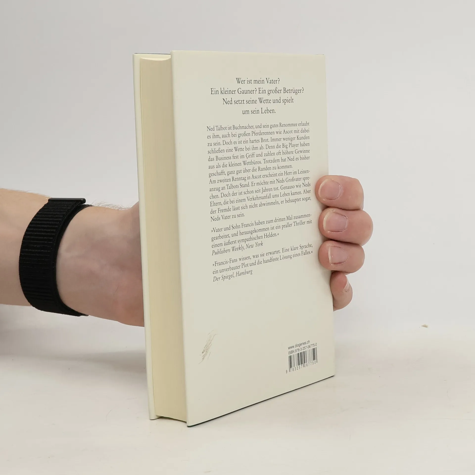 Klappentext: Ned Talbot ist Buchmacher, und sein gutes Renommee erlaubt es ihm, auch bei großen Pferderennen in Ascot mit dabei zu sein. Doch es ist ein hartes Brot. Immer weniger Kunden schließen eine Wette bei ihm ab. Denn die Big Player haben das Business fest im Griff und zahlen oft höhere Gewinne aus als die kleinen Wettbüros. Trotzdem hat Ned es bisher geschafft, ganz gut über die Runden zu kommen. Am zweiten Renntag in Ascot erscheint ein Herr im Leinenanzug an Talbots Stand. Er möchte mit Neds Großvater sprechen. Doch der ist schon seit Jahren tot. Genauso wie Neds Eltern, die bei einem Verkehrsunfall ums Leben kamen. Aber der Fremde lässt sich nicht abwimmeln, er behauptet sogar, Neds Vater zu sein ..