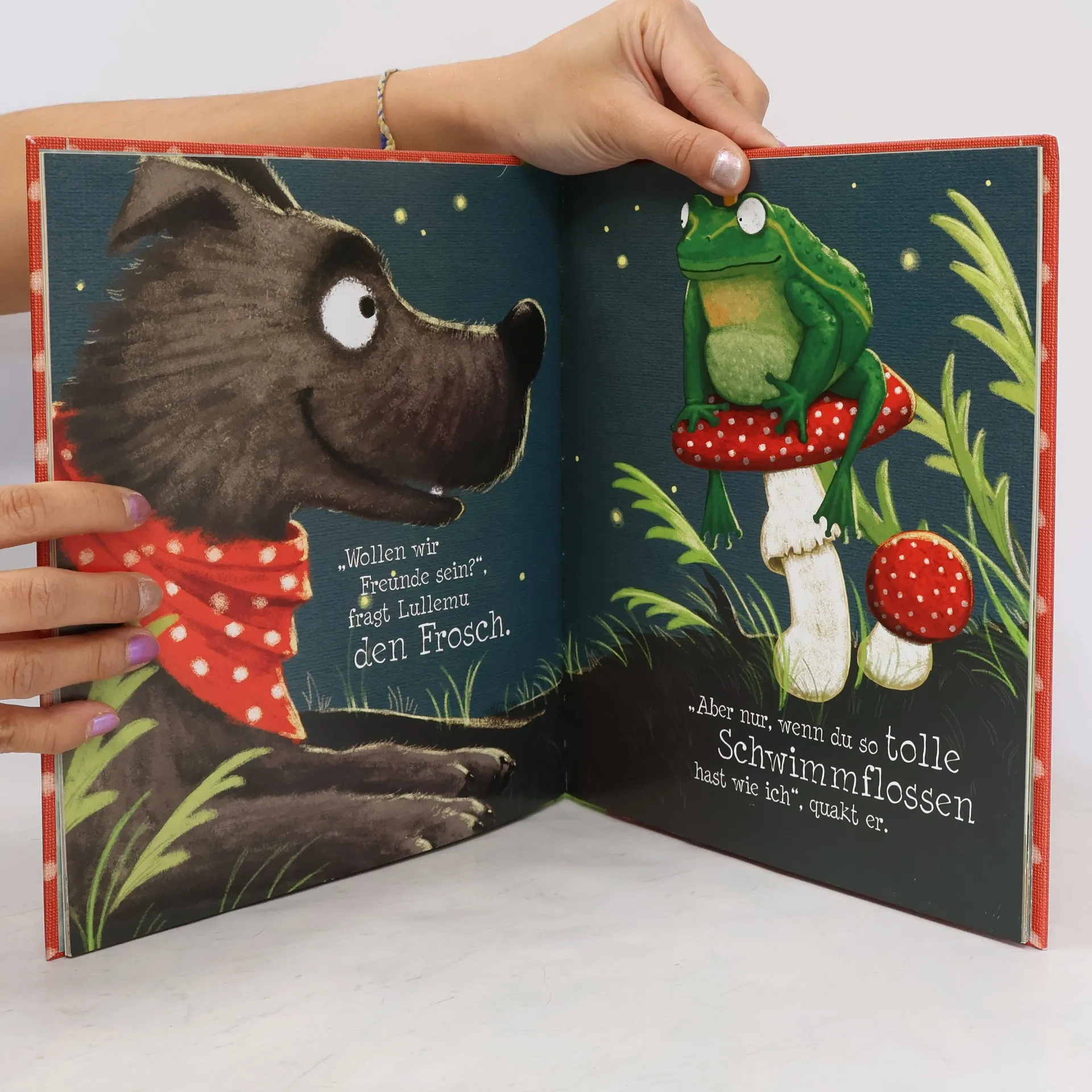 Lullemu hat ganz viele Spielsachen. Nur einen Freund hat er nicht. Also macht er sich auf die Suche und stellt fest, dass Freundefinden gar nicht so leicht ist: Das Schaf findet sein Fell nicht wollig genug und der Marienkäfer wünscht sich einen Freund mit feinen Flügeln. Doch schließlich trifft er Mullewu, dem es ganz ähnlich geht wie ihm.