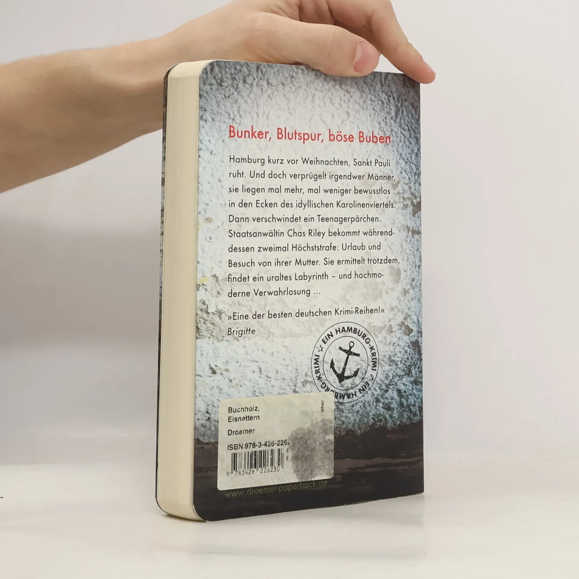 Hamburg kurz vor Weihnachten, Sankt Pauli ruht. Und doch verprügelt irgendwer Männer, sie liegen mal mehr, mal weniger bewusstlos in den Ecken des idyllischen Karolinenviertels. Dann verschwindet ein Teenagerpärchen. Staatsanwältin Chas Riley bekommt währenddessen zweimal Höchststrafe: Urlaub und Besuch von ihrer Mutter. Sie ermittelt trotzdem, findet ein uraltes Labyrinth – und hochmoderne Verwahrlosung … „Eine der besten deutschen Krimi-Reihen!“ Brigitte
