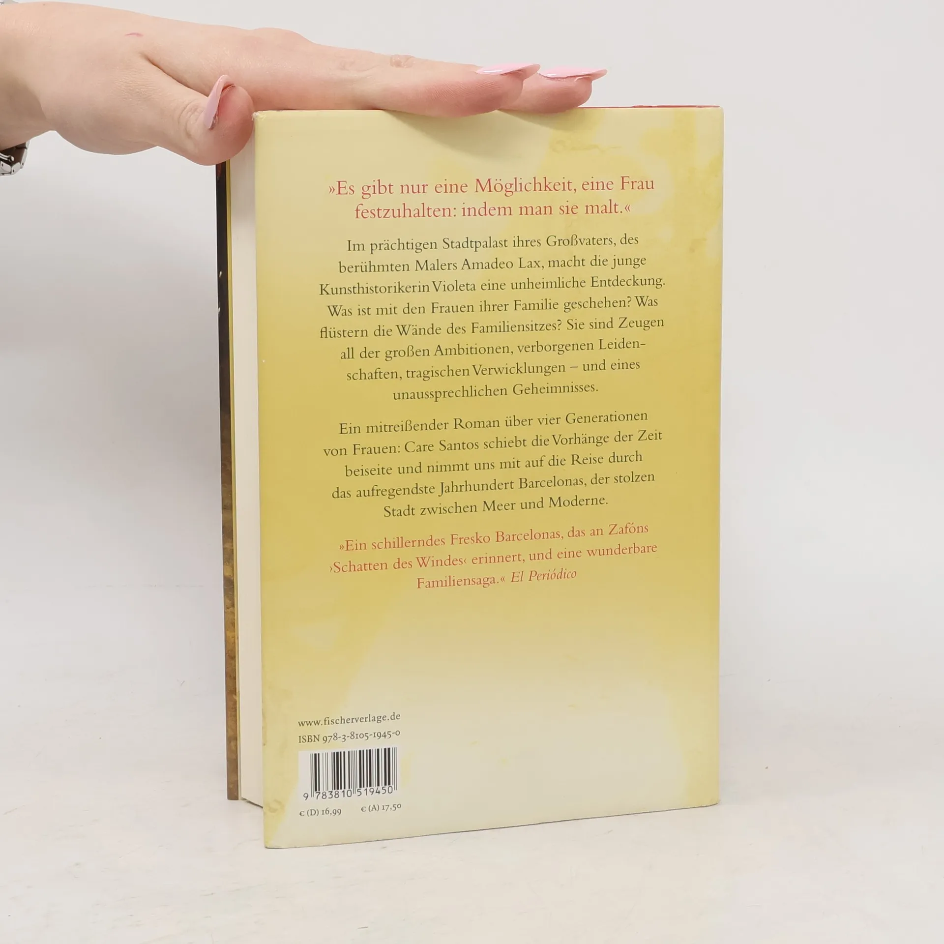 'Es gibt nur eine Möglichkeit, eine Frau festzuhalten: indem man sie malt.' Im prächtigen Stadtpalast ihres Großvaters, des berühmten Malers Amadeo Lax, macht die junge Kunsthistorikerin Violeta eine unheimliche Entdeckung. Bei den Restaurierungsarbeiten stößt man auf einen zugemauerten Raum, der etwas Furchtbares offenbart. Was ist geschehen mit den Frauen ihrer Familie? Was flüstern die Wände des Familiensitzes? Sie sind Zeugen all der großen Ambitionen, verborgenen Leidenschaften, tragischen Verwicklungen – und eines unaussprechlichen Geheimnisses. Ein mitreißender Roman über vier Generationen von Frauen: Care Santos schiebt die Vorhänge der Zeit beiseite und nimmt uns mit auf die Reise durch das aufregendste Jahrhundert Barcelonas, der stolzen Stadt zwischen Meer und Moderne. Der Bestseller von einer der meistgelesenen Autorinnen Spaniens, der mit diesem Roman der internationale Durchbruch gelang. 'Diesen Roman liest man nicht nur, man erfährt ihn mit allen Sinnen.' El Cultural 'Ein schillerndes Fresko Barcelonas, das an Zafóns ›Schatten des Windes‹ erinnert, und eine wunderbare Familiensaga.' El Periódico