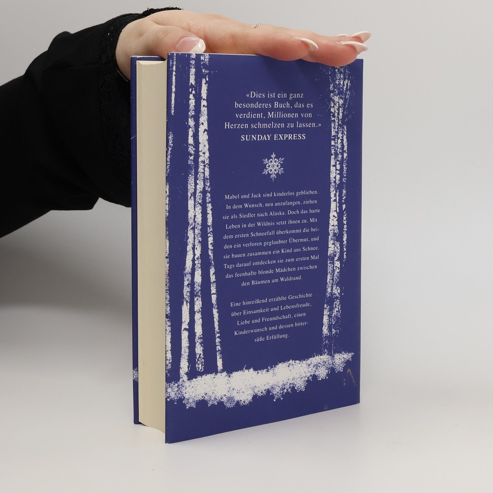 Alaska, in den 1920er Jahren: Mabel und Jack konnten keine Kinder bekommen. Um den Schmerz und die Enttäuschung hinter sich zu lassen, haben sie an der Zivilisationsgrenze Alaskas ein neues, einfaches Leben als Farmer begonnen. Doch Trauer und der harte Überlebenskampf in der erbarmungslosen Natur schaffen zwischen den beiden, die sich innig lieben, eine scheinbar unüberbrückbare Distanz. Als der erste Schnee fällt, überkommt Mabel für kurze Zeit eine fast kindliche Leichtigkeit. Eine Schneeballschlacht mit Jack entspinnt sich, und sie bauen vor ihrer Hütte zusammen ein Kind aus Schnee. Am nächsten Tag entdecken sie zum ersten Mal das feenhafte blonde Mädchen in Begleitung eines Fuchses, das sie zwischen den Bäumen des Waldes hindurch beobachtet. Woher kommt das Kind? Wie kann es allein in der Wildnis überleben? Und was hat es mit den kleinen Fußspuren auf sich, die von Mabels und Jacks Blockhaus wegführen? «Dieses Buch ist pure Magie, von Deckel zu Deckel durchwoben mit der kalten Schönheit der Wildnis Alaskas. Eowyn Ivey erzählt mit der fesselnden Zartheit des Schneefalls, den sie so wunderbar beschreibt.» Ali Shaw
