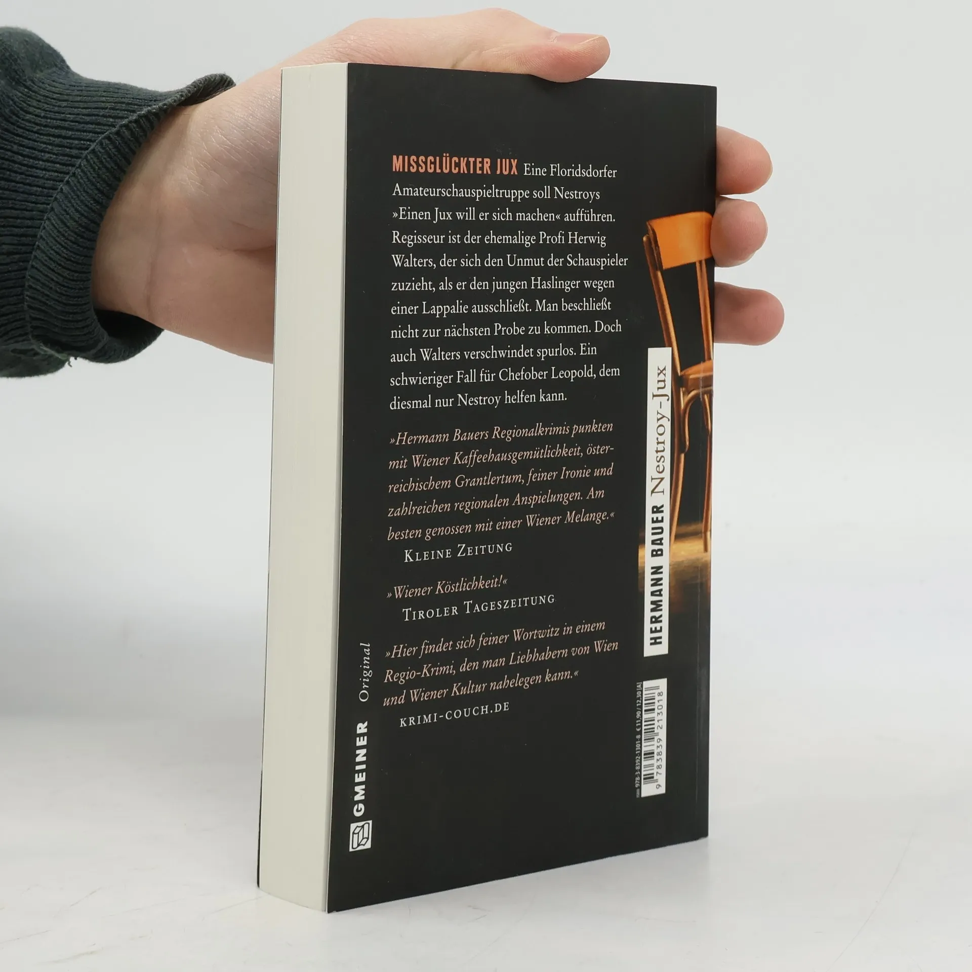 MISSGLüCKTER JUX Eine Floridsdorfer Amateurschauspieltruppe soll Nestroys »Einen Jux will er sich machen« aufführen. Regisseur ist der ehemalige Profi Herwig Walters, der sich den Unmut der Schauspieler zuzieht, als er den jungen Haslinger wegen einer Lappalie ausschließt. Man beschließt nicht zur nächsten Probe zu kommen. Doch auch Walters verschwindet spurlos. Ein schwieriger Fall für Chefober Leopold, dem diesmal nur Nestroy helfen kann.