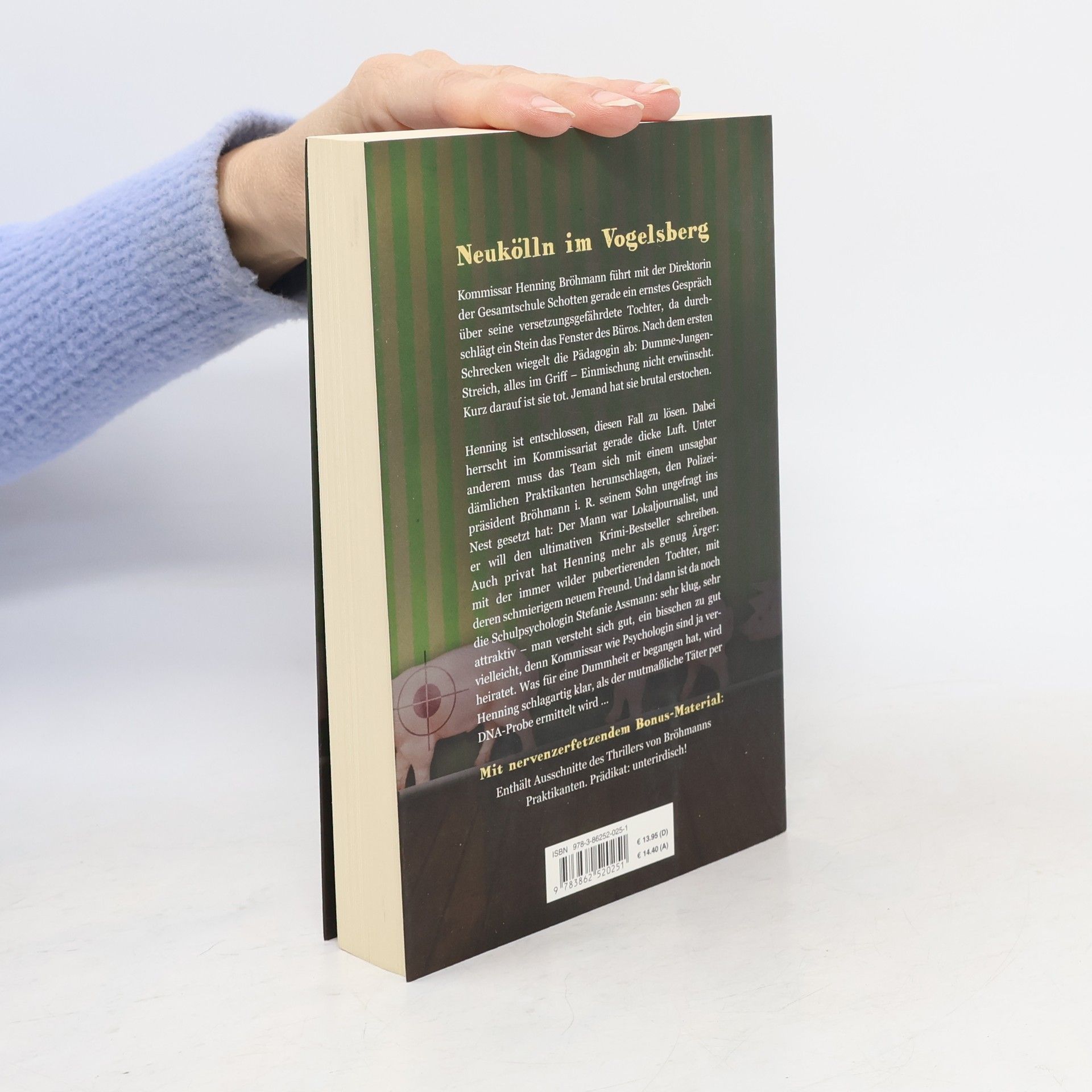 Neukölln im Vogelsberg Kommissar Henning Bröhmann führt mit der Direktorin der Gesamtschule Schotten gerade ein ernstes Gespräch über seine versetzungsgefährdete Tochter, da durchschlägt ein Stein das Fenster des Büros. Nach dem ersten Schrecken wiegelt die Pädagogin ab: Dumme-Jungen-Streich, alles im Griff – Einmischung nicht erwünscht. Kurz darauf ist sie tot. Jemand hat sie brutal erstochen. Henning ist entschlossen, diesen Fall zu lösen. Dabei herrscht im Kommissariat gerade dicke Luft. Unter anderem muss das Team sich mit einem unsagbar dämlichen Praktikanten herumschlagen, den Polizeipräsident Bröhmann i. R. seinem Sohn ungefragt ins Nest gesetzt hat: Der Mann war Lokaljournalist, und er will den ultimativen Krimi-Bestseller schreiben. Auch privat hat Henning mehr als genug Ärger: mit der immer wilder pubertierenden Tochter, mit deren schmierigem neuem Freund. Und dann ist da noch die Schulpsychologin Stefanie Assmann: sehr klug, sehr attraktiv – man versteht sich gut, ein bisschen zu gut vielleicht, denn Kommissar wie Psychologin sind ja verheiratet. Was für eine Dummheit er begangen hat, wird Henning schlagartig klar, als der mutmaßliche Täter per DNA-Probe ermittelt wird … Mit nervenzerfetzendem Bonus-Material: Enthält Ausschnitte des Thrillers von Bröhmanns Praktikanten. Prädikat: unterirdisch!