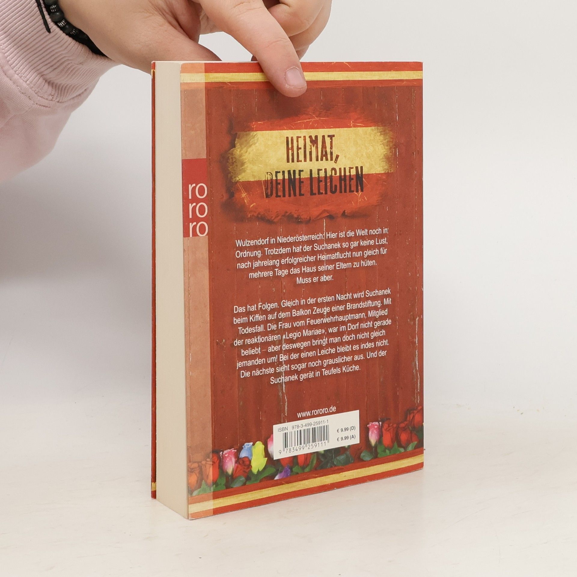 Heimat, deine Leichen.Wulzendorf in Niederösterreich: Hier ist die Welt noch in Ordnung. Trotzdem hat der Suchanek so gar keine Lust, nach jahrelang erfolgreicher Heimatflucht nun gleich für mehrere Tage das Haus seiner Eltern zu hüten. Muss er aber.Das hat Folgen. Gleich in der ersten Nacht wird Suchanek beim Kiffen auf dem Balkon Zeuge einer Brandstiftung. Mit Todesfall. Die Frau vom Feuerwehrhauptmann, Mitglied der reaktionären «Legio Mariae», war im Dorf nicht gerade beliebt – aber deswegen bringt man doch nicht gleich jemanden um! Bei der einen Leiche bleibt es indes nicht. Die nächste sieht sogar noch grauslicher aus. Und der Suchanek gerät in Teufels Küche.