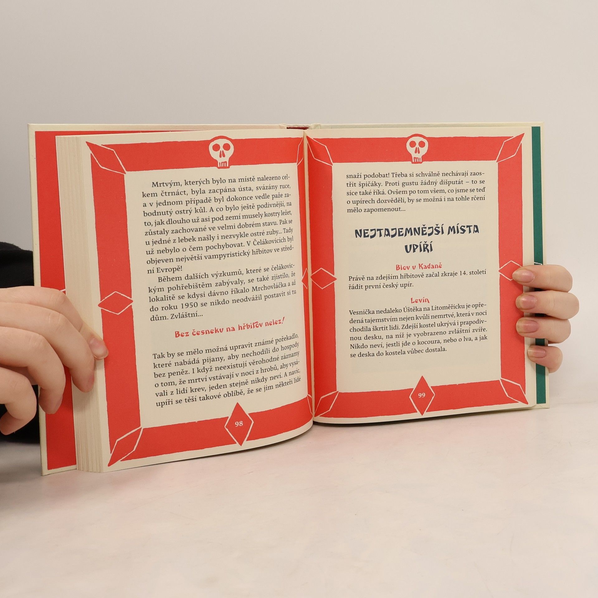 Úpí i upíři? Kde řádil Pérák? Každé bystré dítě tuší, vodník má rád kafe s duší! Už se bojíte? Máte proč! Na cestě na nejtajemnější místa na vás číhá upír Myslata, Bílá i Černá paní, Klempera, čert či vodník, což je, jak zjistíte, taky vlastně čert. Ale takový, co se nepropadl pod zem do pekla, ale do rybníka či řeky. A ne všechny strašidelné bytosti jsou spojeny s dávnými časy, takový Pérák, jakýsi český Spiderman, za války dělal pořádek, až „Němčour padal na zadek“. V testících na konci kapitol zjistíte, zda už se vyznáte ve Strašidelném Česku. Knížku si vezměte s sebou na výlet!