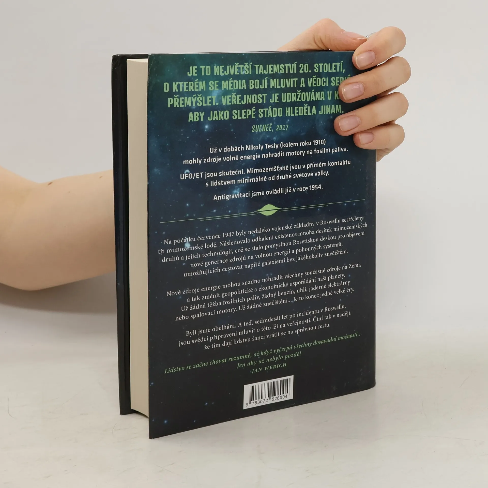 Nejsme sami. Nikdy jsme nebyli sami. Je to největší tajemství 20. století, o kterém se média bojí mluvit a vědci seriózně přemýšlet. Veřejnost je udržována v klamu, aby jako slepé stádo hleděla jinam. Nové zázračné technologie mohou zabránit globální ekologické katastrofě. Blížíme se konci jedné velké éry těžby fosilních paliv, benzínu, uhlí, jaderných elektráren a spalovacích motorů. Podaří se na této cestě k lepšímu uspořádání světa pozvednout hlas pravdy a překonat odpor mocných vlivových skupin? Dr. Steven M. Greer je přední autoritou v oblasti ET/UFO. Poskytl souhrnné informace americkým prezidentům, členům Kongresu a dalším světovým vůdcům a vojenským činitelům. Má kontakty na stovky vědců, civilistů a vládních osobností, kteří mají přístup k tajným projektům. „Lidstvo se začne chovat rozumně, až když vyčerpá všechny dosavadní možnosti.“ Jen aby už nebylo pozdě! Nové zdroje energie mohou nahradit všechny současné zdroje a změnit geopolitické a ekonomické uspořádání planety. Už žádné znečištění... Po sedmdesáti letech od incidentu v Roswellu jsou svědci připraveni mluvit o této lži, aby dali lidstvu šanci vrátit se na správnou cestu.