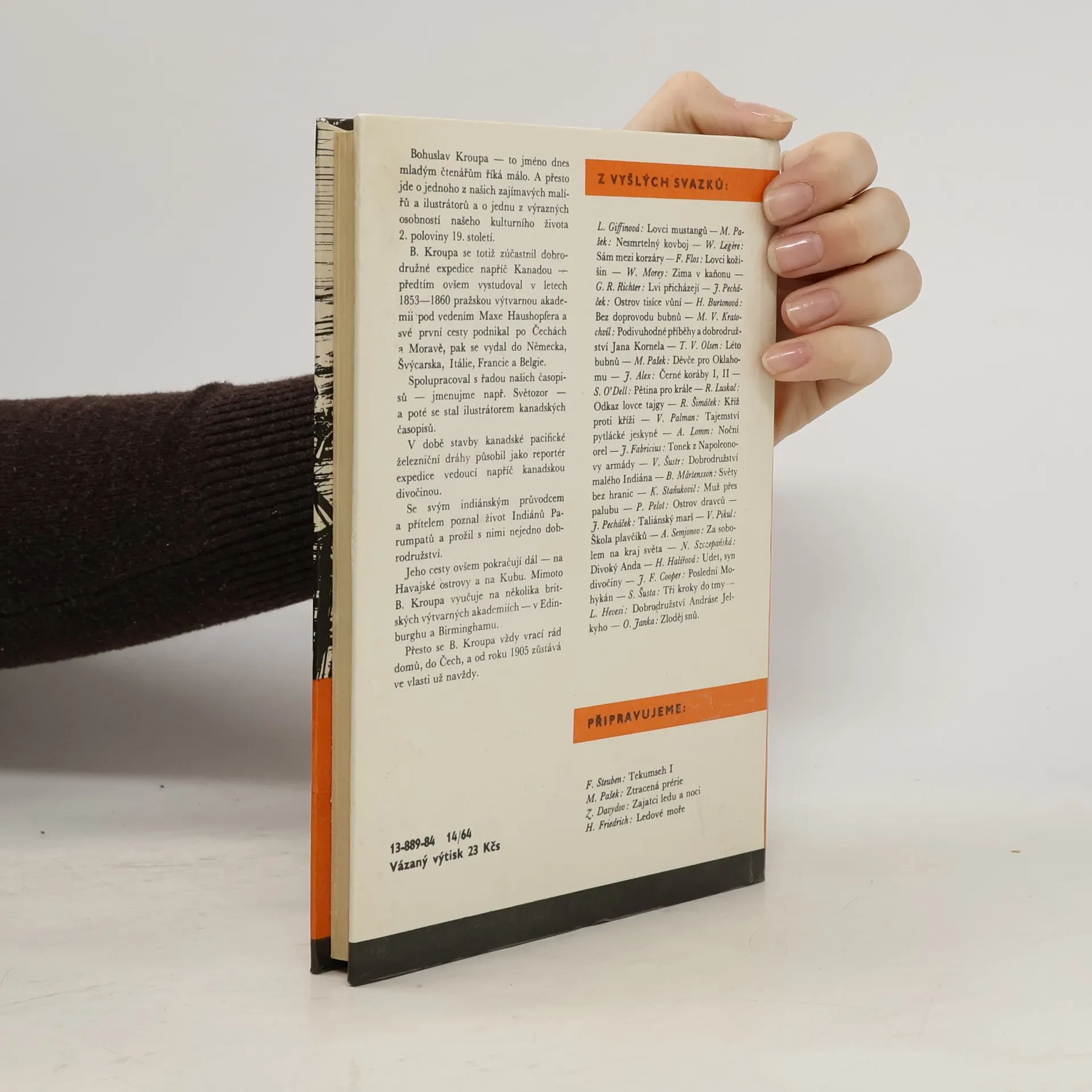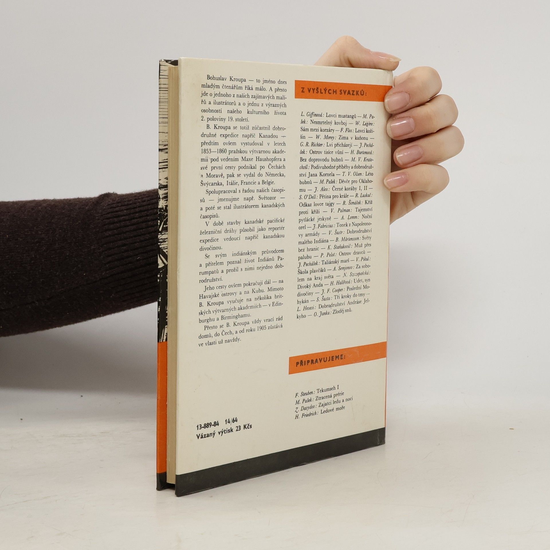 Dobrodružný příběh, jehož protagonistou je český malíř a ilustrátor amerického Západu 2. pol. 19. století - Bohuslav Kroupa (1828-1912). Kniha opatřena doslovem o malíři Bohuslavu Kroupovi a jsou zde také reprodukovány jeho dvě kresby.