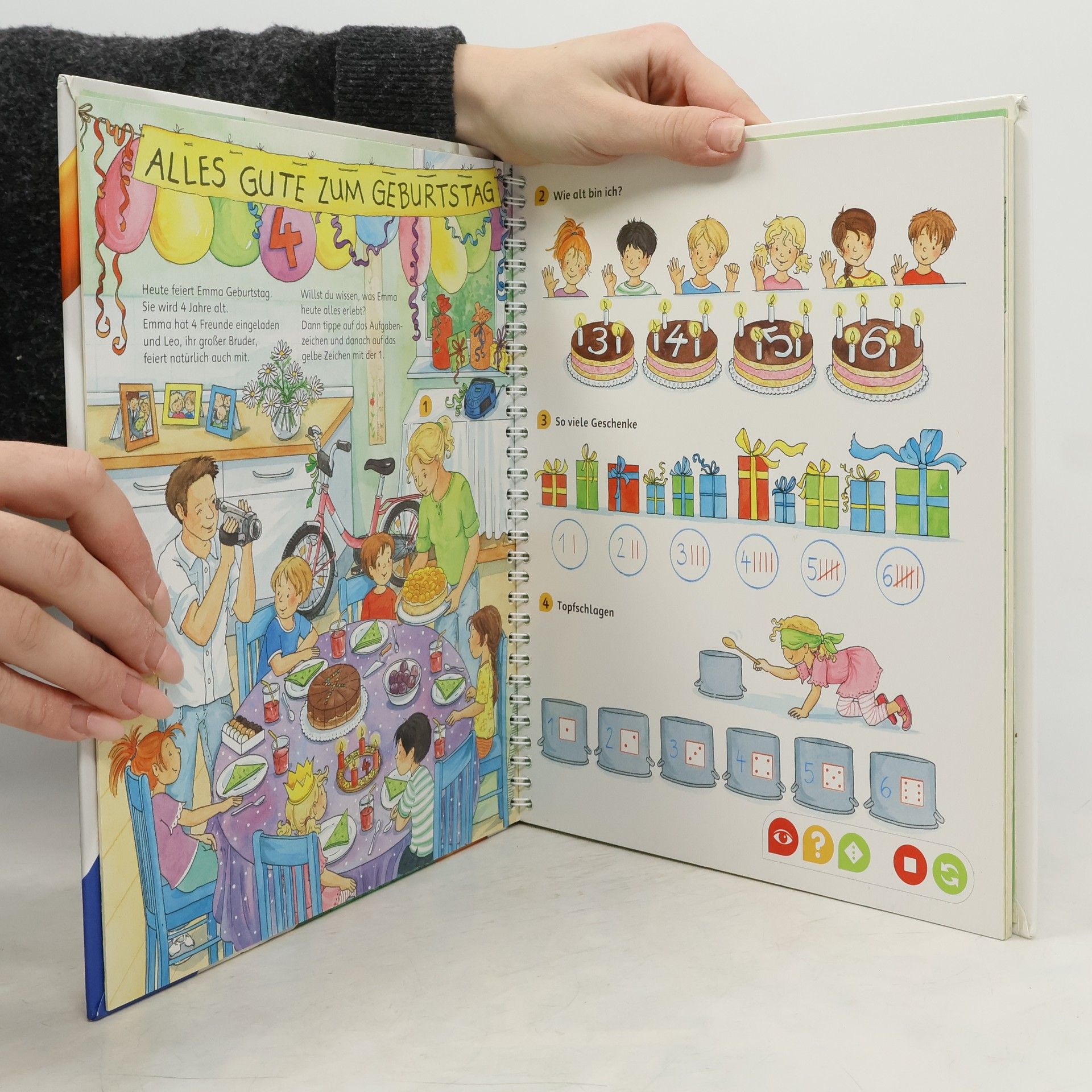 Rechnen im Zahlenraum bis 10 für Vorschulkinder und Erstklässler. Mit dem dazu gehörigen tiptoi-Stift kann man viele Aufgaben, Spiele und Rätsel machen und so ganz spielerisch die Zahlen von 1 bis 10 entdecken
