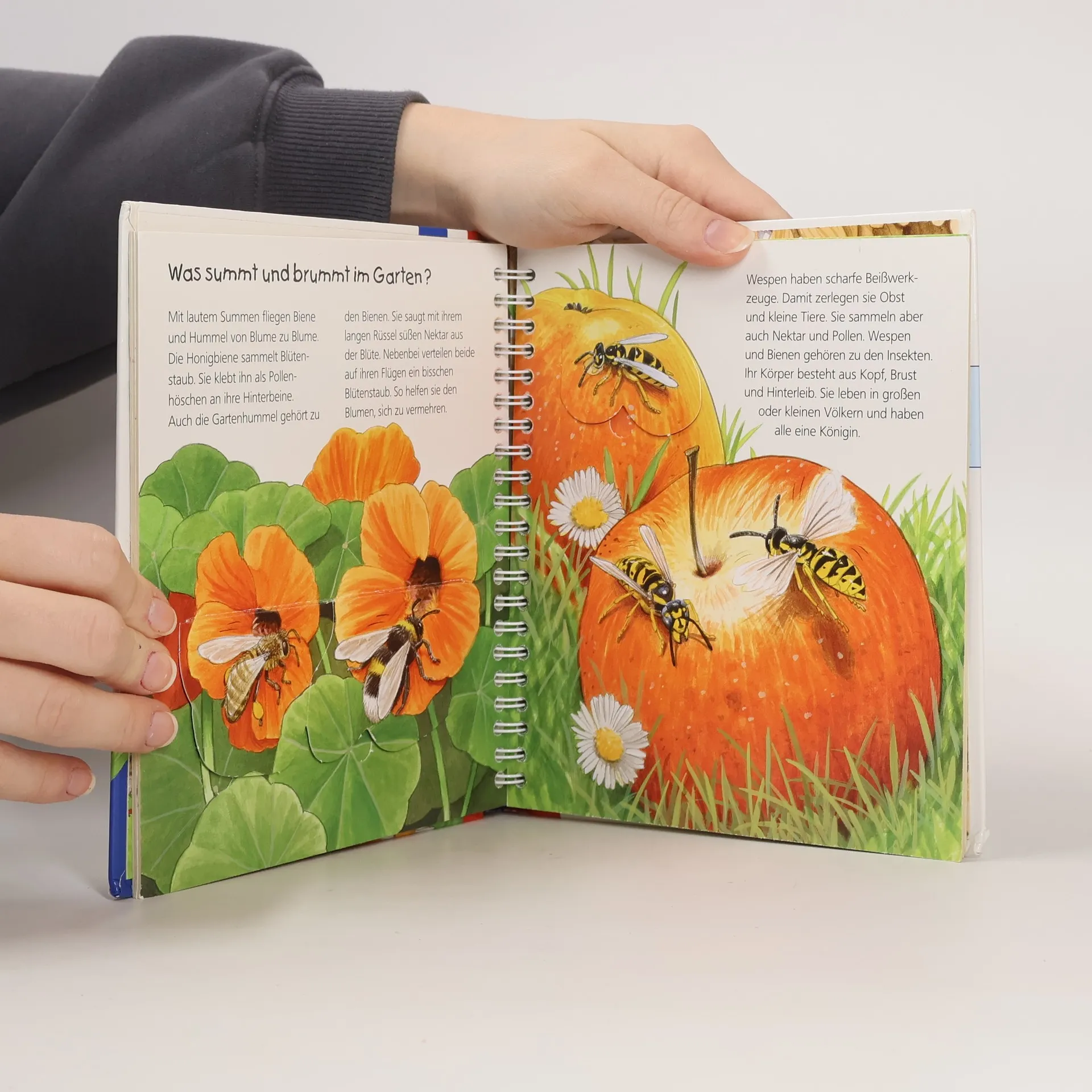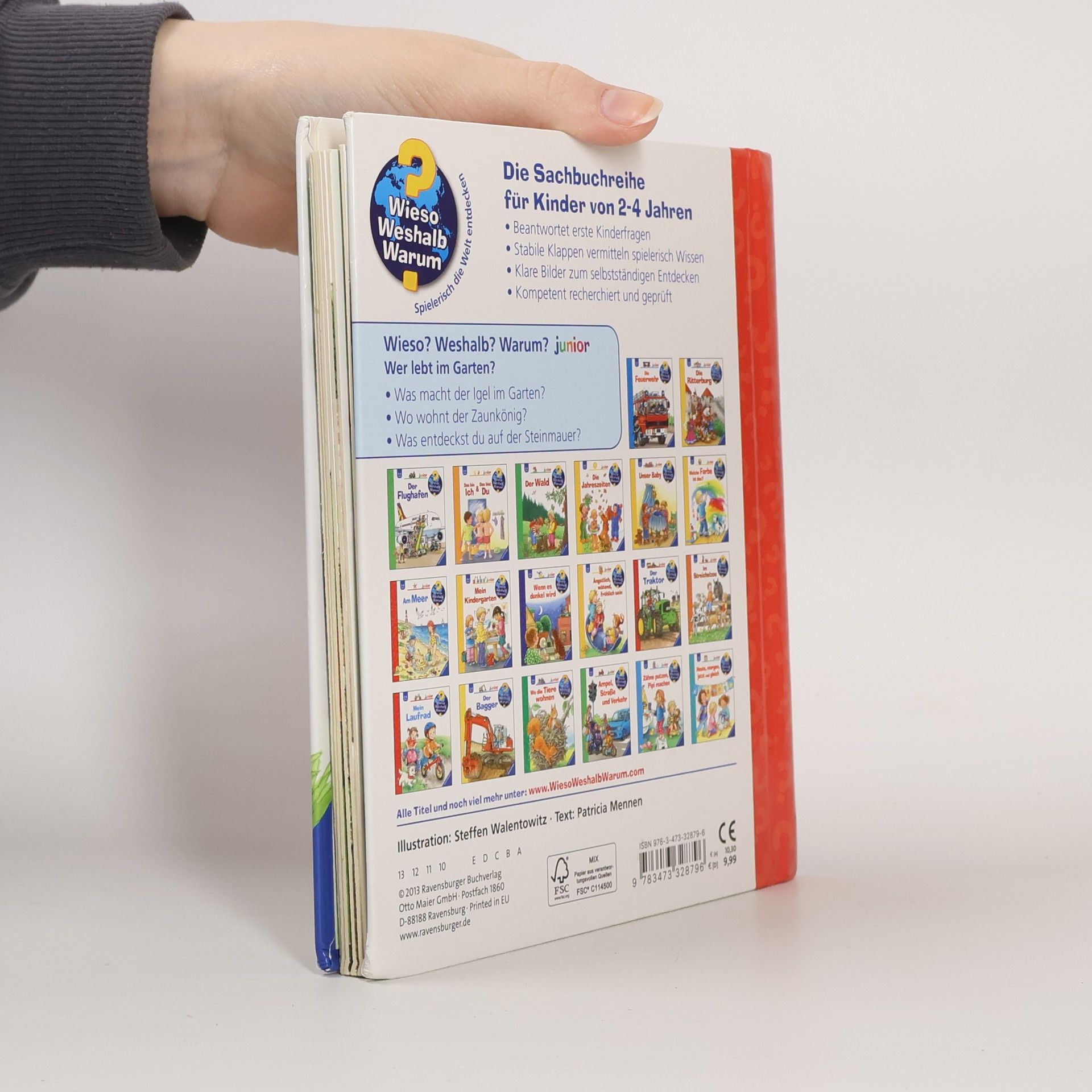 Hier summt und brummt es gewaltig! Dieses Buch nimmt kleine Naturforscher mit auf eine Entdeckungstour durch den Garten, bei der es allerlei zu sehen gibt: Wer versteckt sich hinter dem Efeu? Wo wohnt die Maus? Welche Tiere tummeln sich im Kompost? Und was frisst der Igel am liebsten? Mit spannenden Bewegungsklappen schauen wir der Eidechse beim Beutefang zu, erkunden das Nest des Zaunkönigs, und beobachten, wie Biene und Hummel Blütenstaub sammeln. Wieso? Weshalb? Warum? junior Die Sachbuchreihe für Kinder von 2-4 Jahren Jeden Tag entdecken Kinder etwas Neues – und haben viele Fragen. Wann kommt die Feuerwehr? Was machen die Tiere im Winter? Warum muss ich Zähne putzen? Die beliebte Sachbuchreihe Wieso? Weshalb? Warum? junior beantwortet die Fragen der Kinder auf Augenhöhe. Sie beleuchtet unterschiedlichste Themen aus ihrer Alltags- und Interessenswelt altersgerecht und mit viel Liebe zum Detail. Die Reihe ist speziell auf kleine Hände und die Bedürfnisse der Kleinsten angepasst. Klare und liebevolle Bilder, kurze Sachtexte sowie handliche Klappen, die Bewegungen veranschaulichen und überraschende und lustige Einblicke gewähren, ermöglichen Kindern, sich ihre Themen selbst zu erschließen. Der Spaß am eigenhändigen Entdecken, die liebevolle Umsetzung und die hochwertige Ausstattung garantieren langanhaltende Freude an jedem Buch.