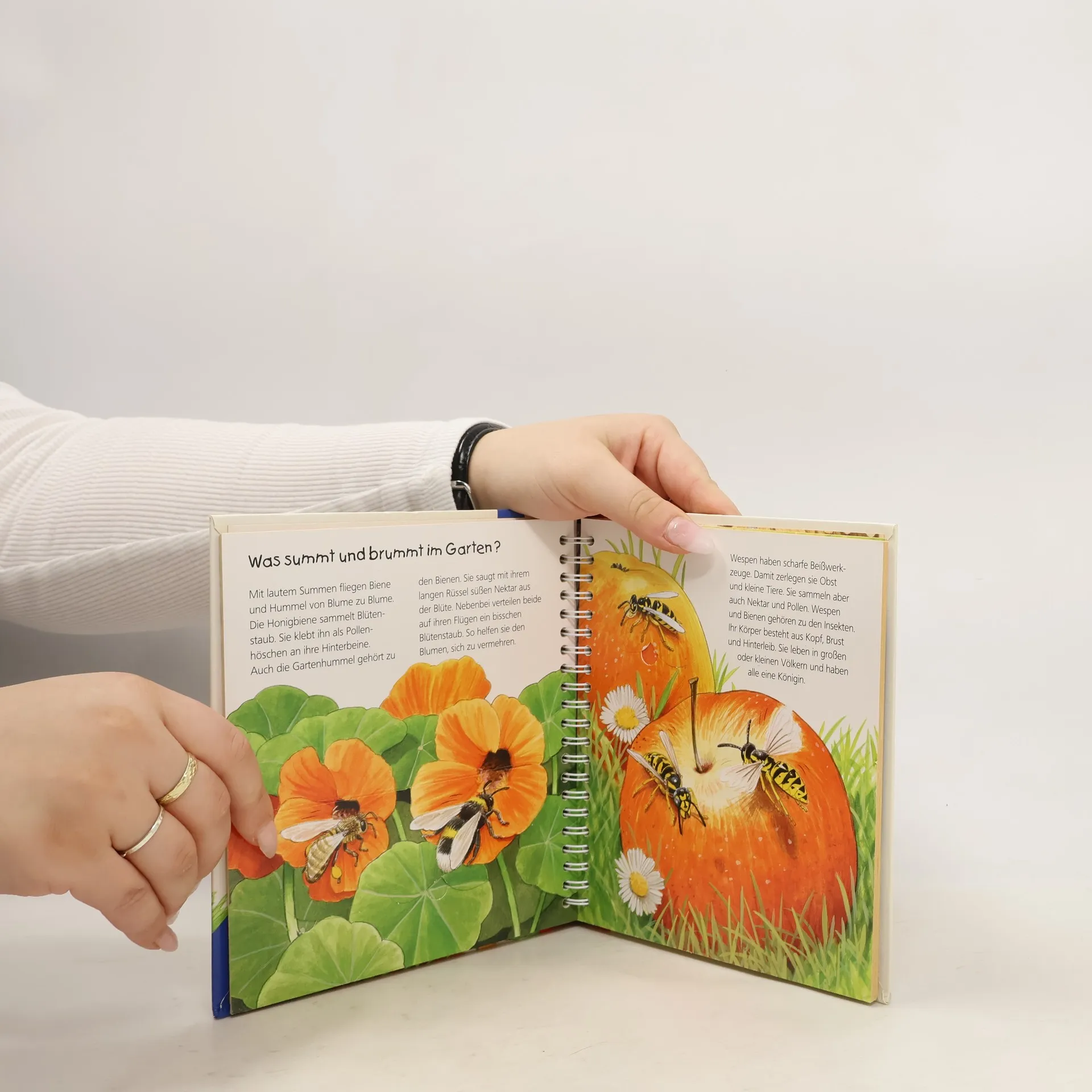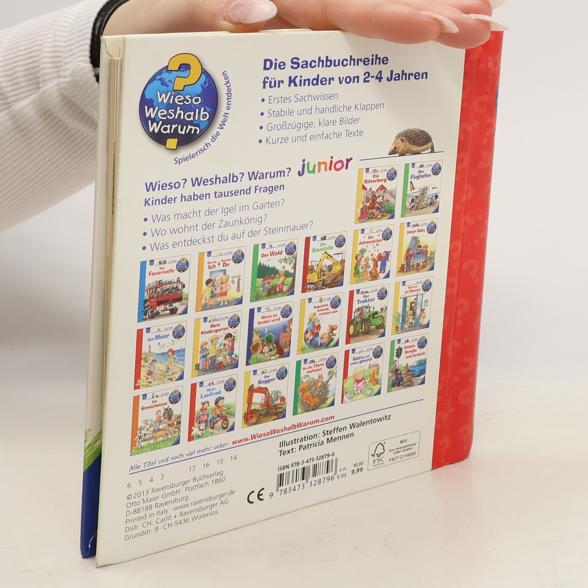Hier summt und brummt es gewaltig! Dieses Buch nimmt kleine Naturforscher mit auf eine Entdeckungstour durch den Garten, bei der es allerlei zu sehen gibt: Wer versteckt sich hinter dem Efeu? Wo wohnt die Maus? Welche Tiere tummeln sich im Kompost? Und was frisst der Igel am liebsten? Mit spannenden Bewegungsklappen schauen wir der Eidechse beim Beutefang zu, erkunden das Nest des Zaunkönigs, und beobachten, wie Biene und Hummel Blütenstaub sammeln. Wieso? Weshalb? Warum? junior Die Sachbuchreihe für Kinder von 2-4 Jahren Jeden Tag entdecken Kinder etwas Neues – und haben viele Fragen. Wann kommt die Feuerwehr? Was machen die Tiere im Winter? Warum muss ich Zähne putzen? Die beliebte Sachbuchreihe Wieso? Weshalb? Warum? junior beantwortet die Fragen der Kinder auf Augenhöhe. Sie beleuchtet unterschiedlichste Themen aus ihrer Alltags- und Interessenswelt altersgerecht und mit viel Liebe zum Detail. Die Reihe ist speziell auf kleine Hände und die Bedürfnisse der Kleinsten angepasst. Klare und liebevolle Bilder, kurze Sachtexte sowie handliche Klappen, die Bewegungen veranschaulichen und überraschende und lustige Einblicke gewähren, ermöglichen Kindern, sich ihre Themen selbst zu erschließen. Der Spaß am eigenhändigen Entdecken, die liebevolle Umsetzung und die hochwertige Ausstattung garantieren langanhaltende Freude an jedem Buch.