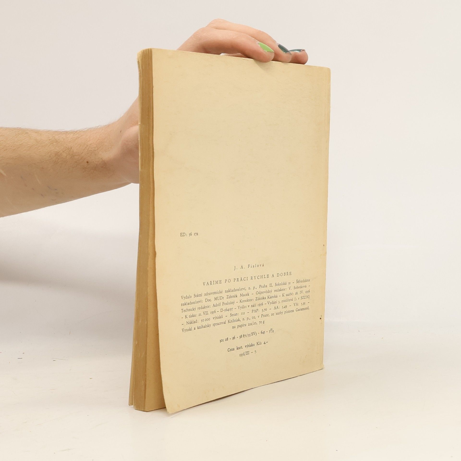 3. rozšířené vydání. Tato příručka je sestavena na základě zkušeností z kurzů minutek. Má nejen naučit vařit, ale též účelně rozdělit práci při vaření a správně zacházet s potravinami. Chceme usnadnit práci všem, kteří potřebují připravit 1x denně i vydatné jídlo (autorka).Obsahuje jídelníčky a předpisy pro roční období.