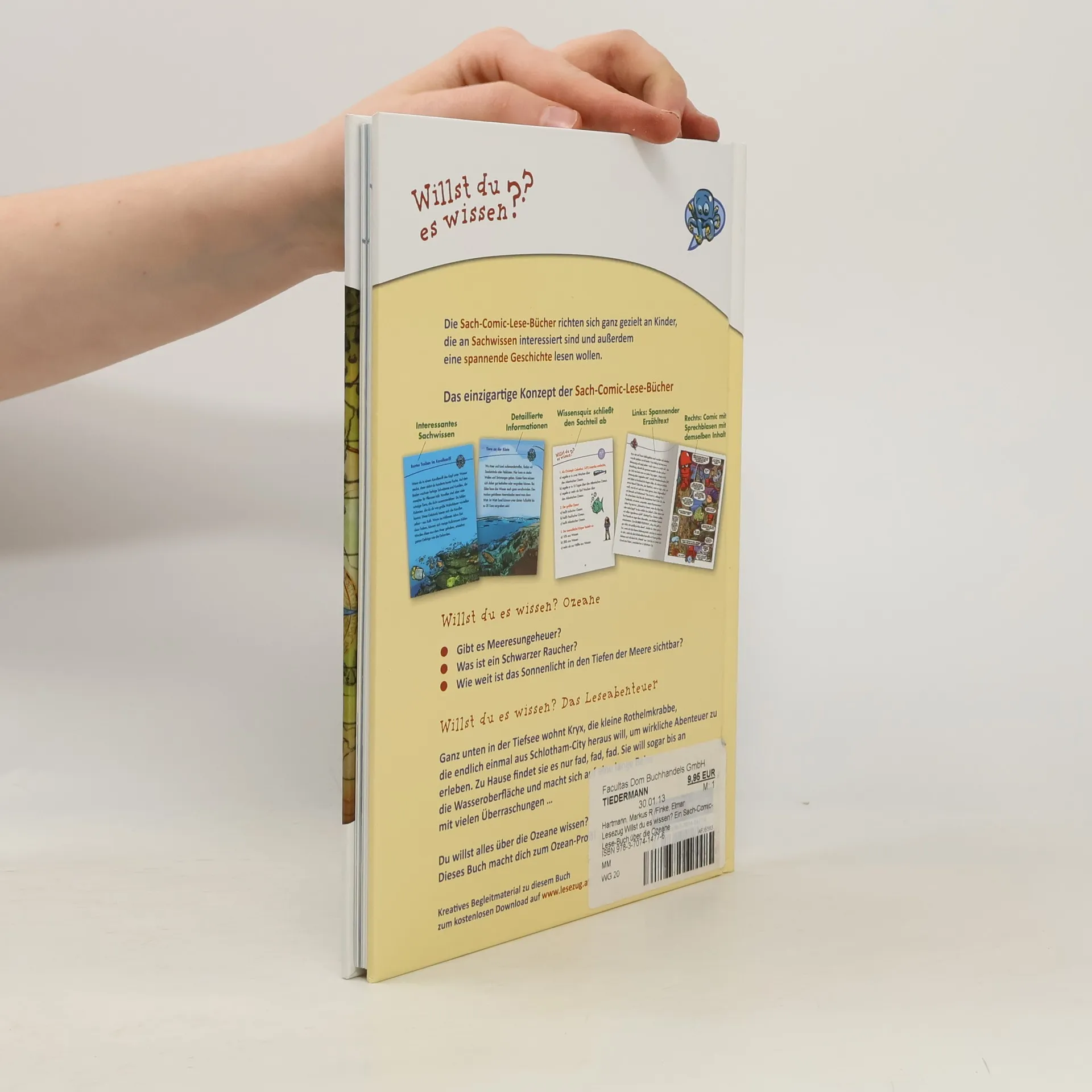 Gibt es Meeresungeheuer? Was ist ein Schwarzer Raucher? Wie weit ist Sonnenlicht in den Tiefen der Meere sichtbar? Du willst alles über die Ozeane wissen? Dieses Buch macht dich zum Ozean-Profi! Ganz unten in der Tiefsee wohnt Kryx, die kleine rote Helm-Krabbe, die endlich einmal aus Schlotheim-City heraus will, um wirkliche Abenteuer zu erleben. Zu Hause findet sie es nur fad, fad, fad. Sie will sogar bis an die Wasseroberfläche und macht sich auf eine lange Reise mit vielen Überraschungen ...