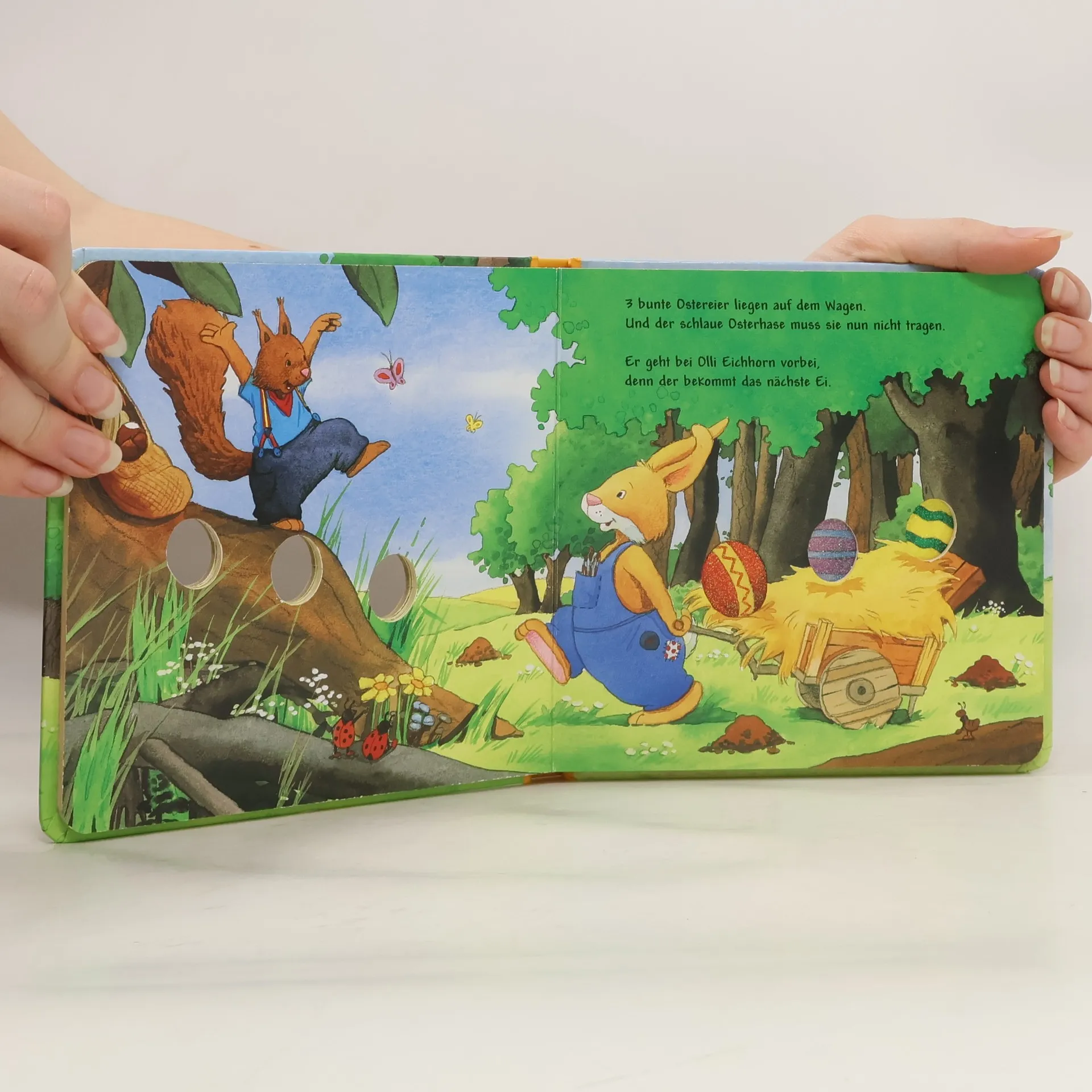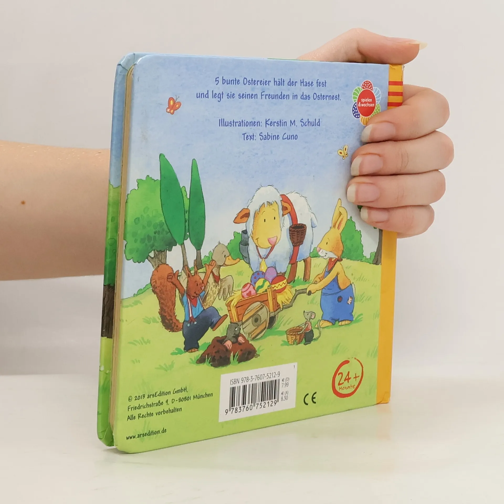 Fünf kunterbunte Ostereier liegen im grünen Gras - und diese fünf bemalten Eier möchte der Osterhase an seine Lieben verschenken. Der gereimte Text und die farbenfrohen Illustrationen laden kleine Osterfans ab 24 Monaten ein, den Hasen auf seinem Weg zu den allerbesten Freunden zu begleiten: aus 5 mach 4, 3, 2, 1...