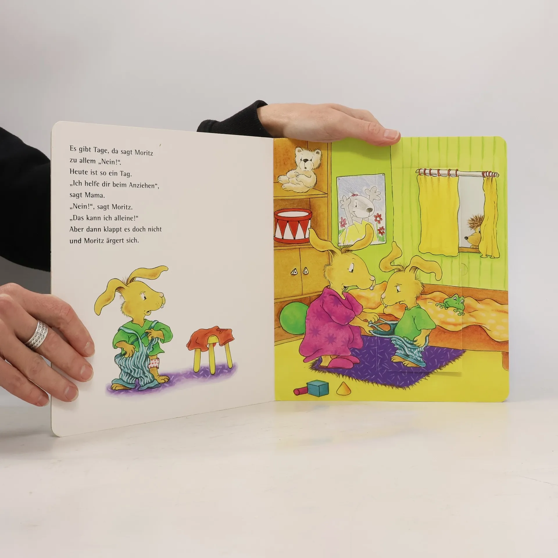 Gefühlschaos und Wutausbrüche: in der Trotzphase geht es oft heiß her – und diese Hitze bekommen Große und Kleine gleichermaßen zu spüren. Dieses kunterbunte, kindnah erzählte Spielbuch voller spannender Klappen begleitet den kleinen Moritz Moppelpo durch einen Tag voller lautstarker Weigerungen.