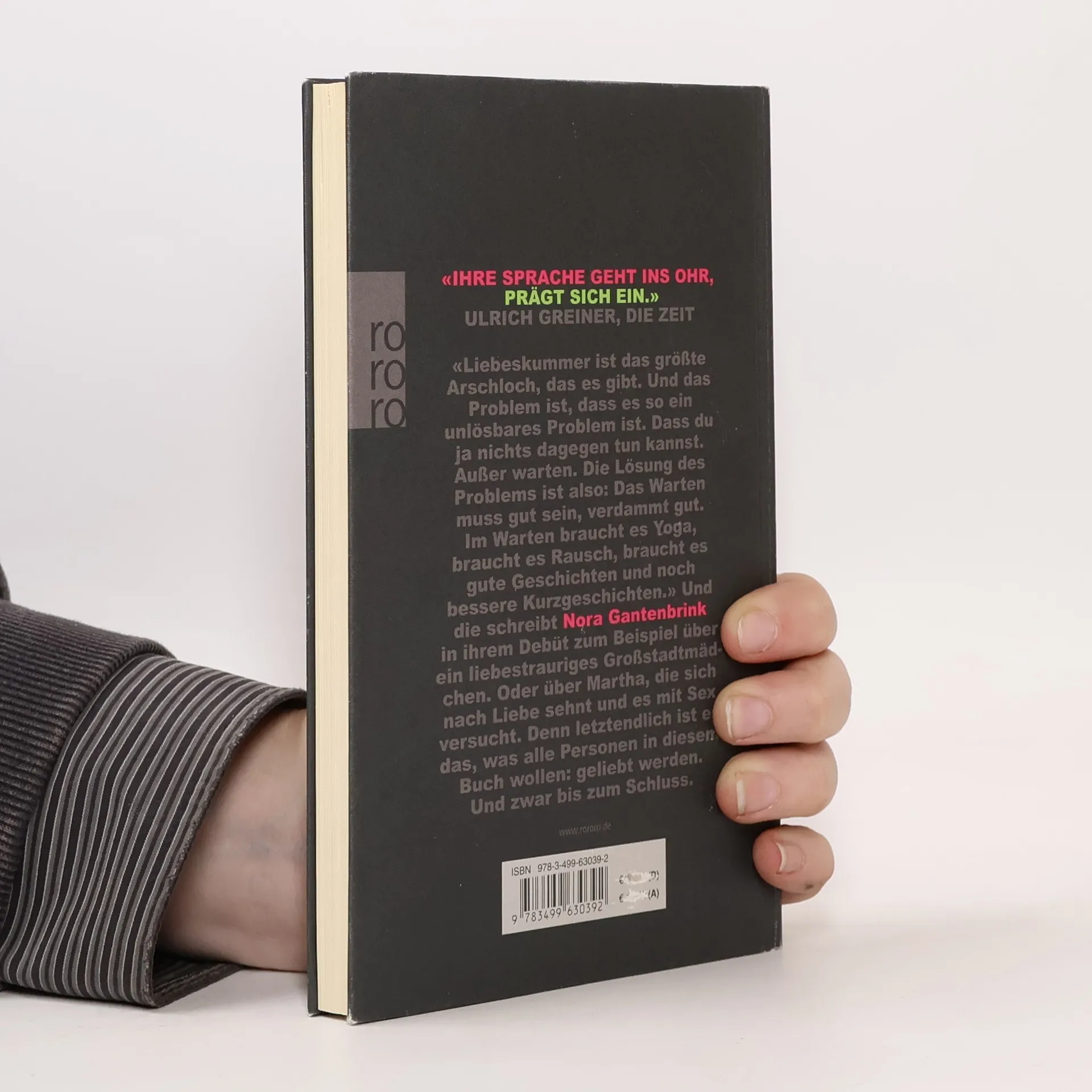 «Liebeskummer ist das größte Arschloch, das es gibt. Und das Problem ist, dass es so ein unlösbares Problem ist. Dass du ja nichts dagegen tun kannst. Außer warten. Die Lösung des Problems ist also: Das Warten muss gut sein, verdammt gut. Im Warten braucht es Yoga, braucht es Rausch, braucht es gute Geschichten und noch bessere Kurzgeschichten.» Und die schreibt Nora Gantenbrink in ihrem Debüt zum Beispiel über ein liebestrauriges Großstadtmädchen. Oder über Martha, die sich nach Liebe sehnt und es mit Sex versucht. Denn letztendlich ist es das, was alle Personen in diesem Buch wollen: geliebt werden. Und zwar bis zum Schluss.