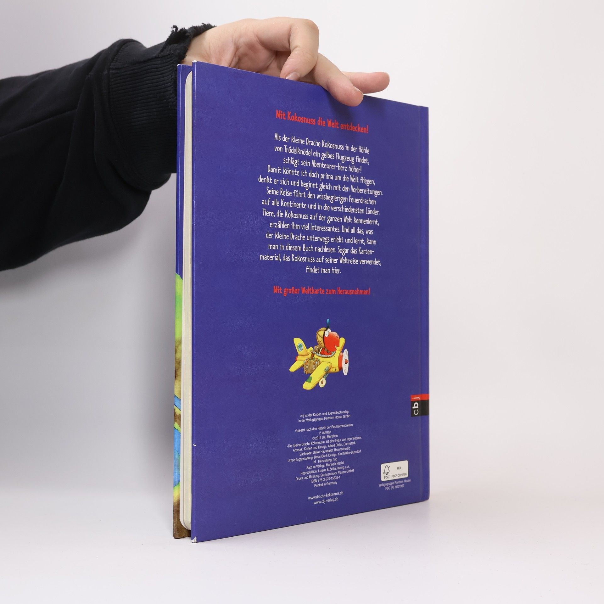Einmal um die ganze Welt ... mit dem kleinen Drachen Kokosnuss. Das ist die Gelegenheit, auf Weltreise zu gehen!, findet der kleine Drache Kokosnuss, als er ein Flugzeug bekommt. Und was er auf dieser Reise sieht und erlebt, erzählt er allen kleinen Kokosnuss-Fans ab 6 Jahren. Auf 24 Seiten erhalten die Leser erste Informationen über die Erde, Länder, Kontinente, Städte, Landschaften, Meere, Berge und vieles mehr. Echtes Kartenmaterial und Info-Kästen bringen wissbegierigen Schulanfängern fremde Länder und Kulturen näher. Eine große Weltkarte zum Herausnehmen macht diesen Kinderatlas im großen Bilderbuchformat (21 x 27 cm) zum unverzichtbaren Standardwerk für jedes Kinderzimmer. Ausstattung: Mit fbg. Illustrationen; Mit Weltkarten-Poster (80 x 55 cm)