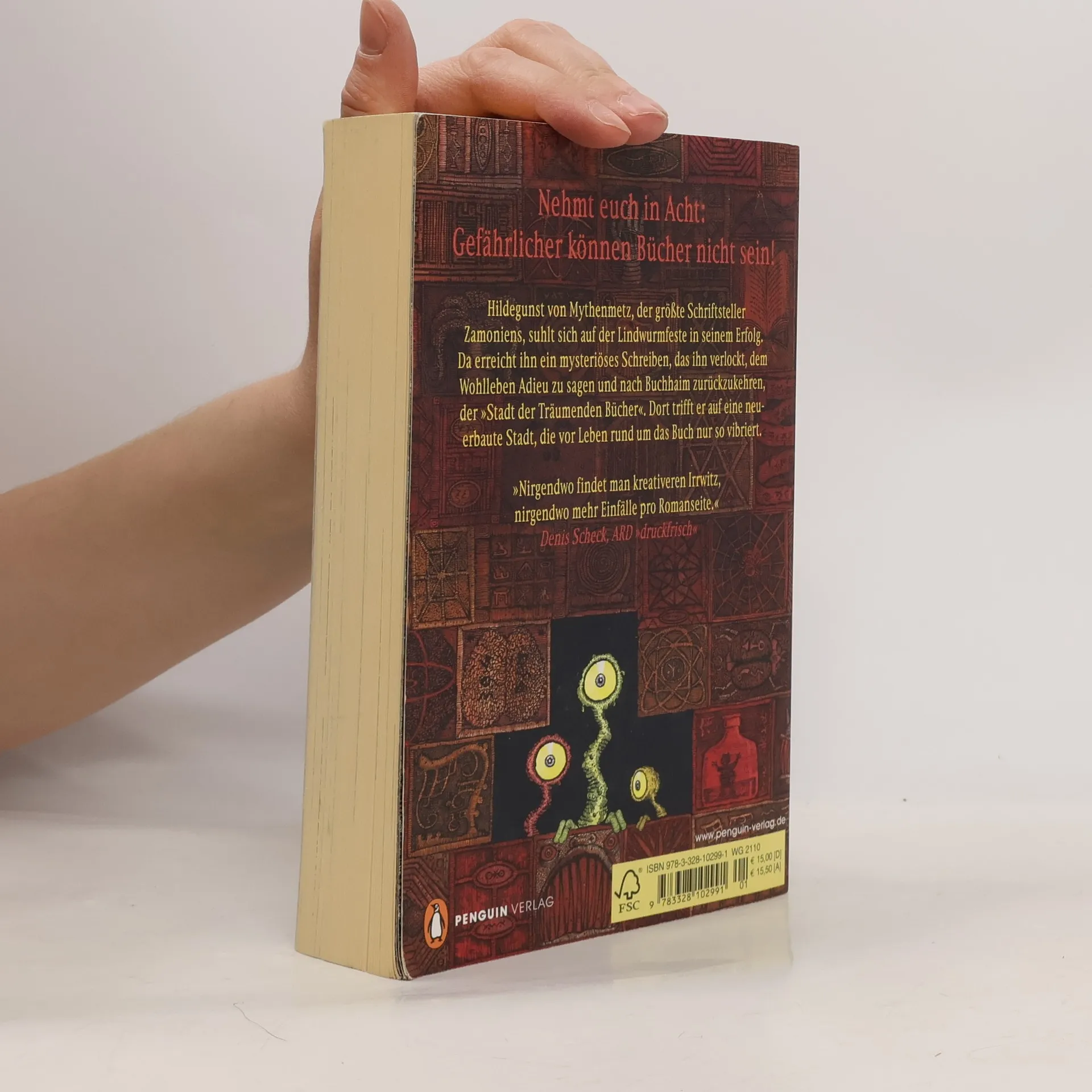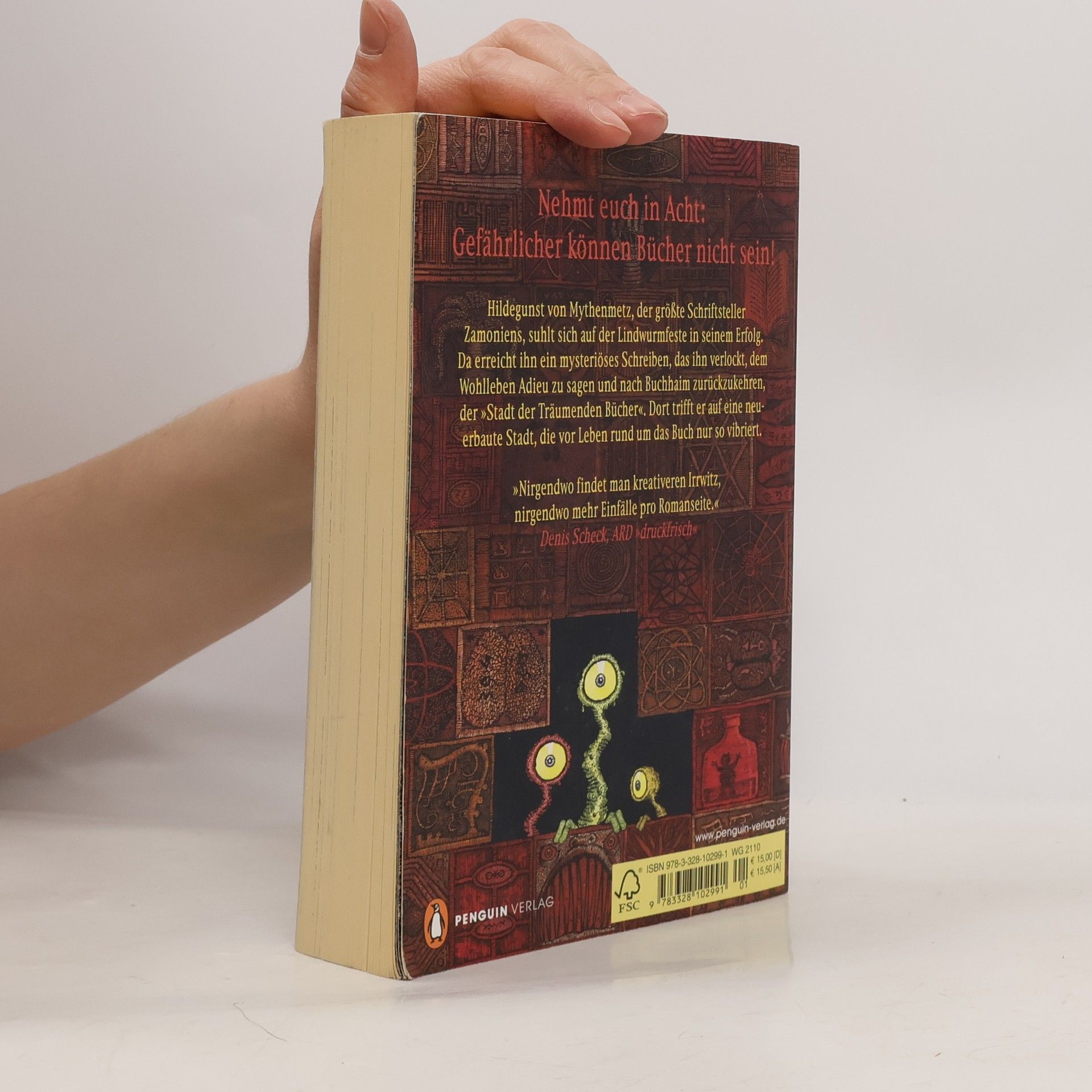 Nehmt euch in Acht: Gefährlicher können Bücher nicht sein! Hildegunst von Mythenmetz, der größte Schriftsteller Zamoniens, suhlt sich auf der Lindwurmfeste in seinem Erfolg. Da erreicht ihn ein mysteriöses Schreiben, das ihn verlockt, dem Wohlleben Adieu zu sagen und nach Buchhaim zurückzukehren, der »Stadt der Träumenden Bücher«. Dort trifft er auf eine neuerbaute Stadt, die vor Leben rund um das Buch nur so vibriert. Und er begegnet alten Freunden, wie dem Lindwurm Ovidios und den Antiquaren Hachmed Ben Kibitzer und Inazea Anazazi, aber auch neuen Phänomenen und Wundern der Stadt. Ausstattung: über 100 Abb.