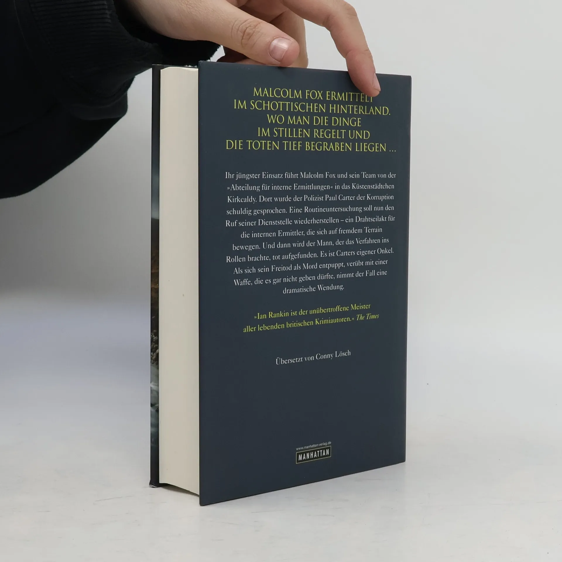 Ein heikler Fall für Malcolm Fox Ihr jüngster Einsatz führt Malcolm Fox und sein Team von der 'Abteilung für interne Ermittlungen' auf die Halbinsel Fife in das Küstenstädtchen Kirkcaldy. Dort wurde gerade der Polizist Paul Carter der Korruption schuldig gesprochen. Eine Routineuntersuchung soll nun den Ruf seiner Dienststelle wieder herstellen - ein Drahtseilakt für die internen Ermittler, die sich auf fremdem Terrain bewegen. Und dann wird der Mann, der das Verfahren gegen Paul Carter ins Rollen brachte, tot aufgefunden. Es ist Carters eigener Onkel. Als sich sein Freitod als Mord entpuppt, verübt mit einer Waffe, die es gar nicht geben dürfte, nimmt der Fall eine dramatische Wendung. Und plötzlich steht weit mehr auf dem Spiel als bloß der Ruf der Polizei. Malcolm Fox ermittelt im schottischen Hinterland. Wo man die Dinge im Stillen regelt und die Toten tief begraben liegen.