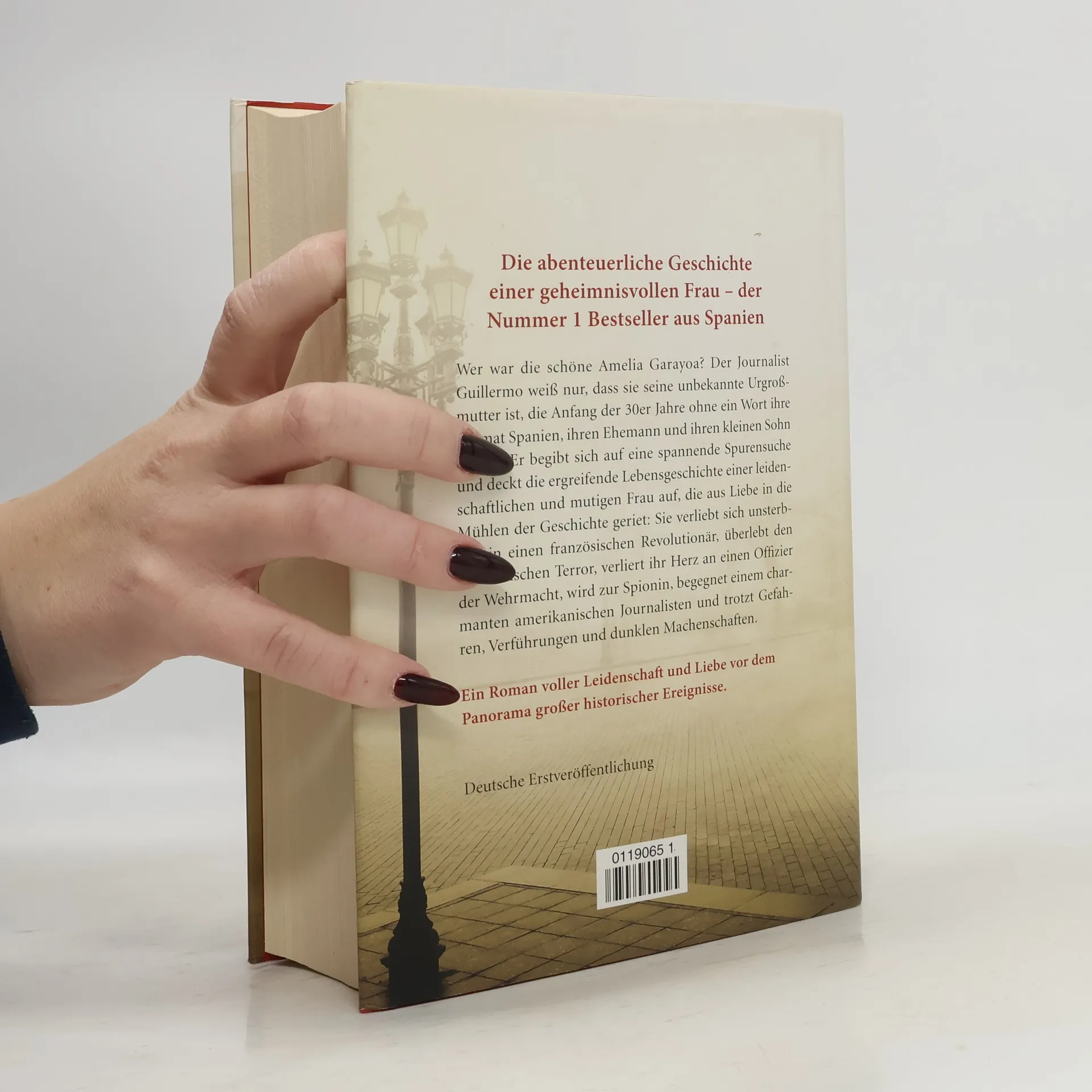 In einer Welt, die auseinanderbricht, folgt eine Frau ihrem Herzen. Wer war die schöne Amelia Garayoa? Der Journalist Guillermo weiß nur, dass seine Urgroßmutter Anfang der 30er Jahre ihren Mann und ihren kleinen Sohn verließ und nie nach Madrid zurückkehrte. Als Guillermo einen mysteriösen Auftrag erhält, entdeckt er eine abenteuerliche Geschichte hinter Amelias Verschwinden: In der turbulenten Zeit vor dem Spanischen Bürgerkrieg verliebte sie sich in einen Revolutionär und folgte ihm in eine Zukunft voller Träume, Ideale und Gefahren. Sie überlebte den Terror Stalins, war Spionin im Deutschland des Zweiten Weltkriegs – und arbeitete dabei gegen den Mann, den sie liebte …