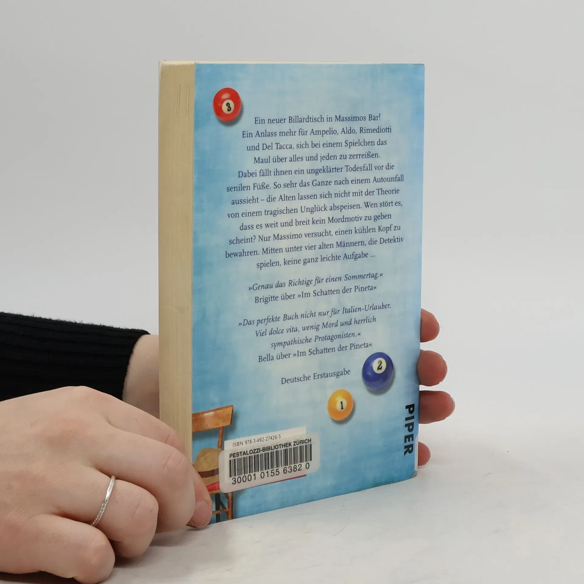 Ein neuer Billardtisch in Massimos Bar! Ein Grund mehr für Ampelio, Aldo, Rimediotti und Del Tacca, sich bei einem Spielchen das Maul über alles und jeden zu zerreißen. Dabei fällt ihnen ein ungeklärter Todesfall vor die senilen Füße. So sehr das Ganze auch nach einem Autounfall aussieht - die Senioren lassen sich nicht mit der Theorie von einem tragischen Unglück abspeisen. Wen stört es, dass es weit und breit kein Mordmotiv gibt? Nur Massimo versucht, einen kühlen Kopf zu behalten. Mitten unter vier alten Männern, die Detektiv spielen, keine ganz leichte Aufgabe ...