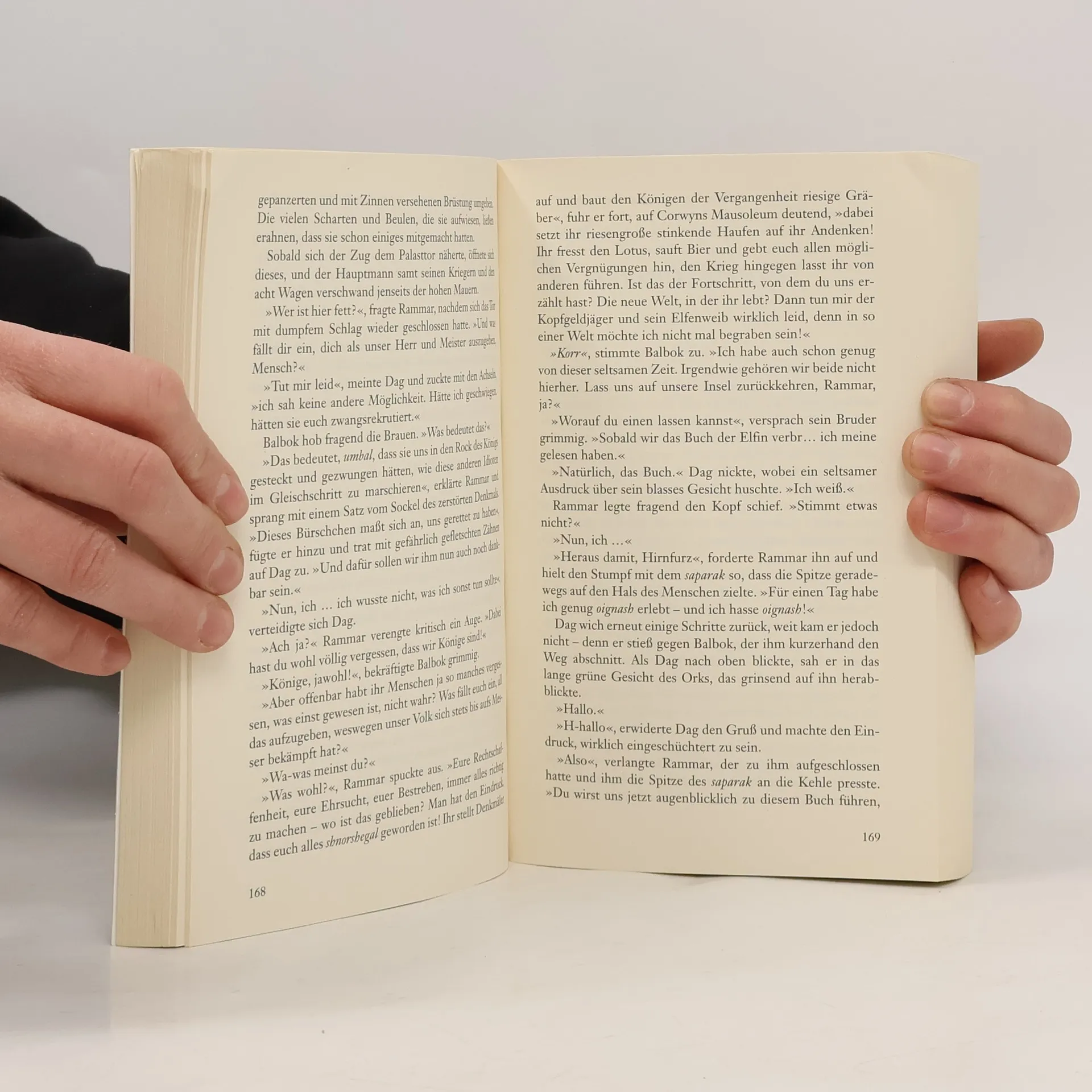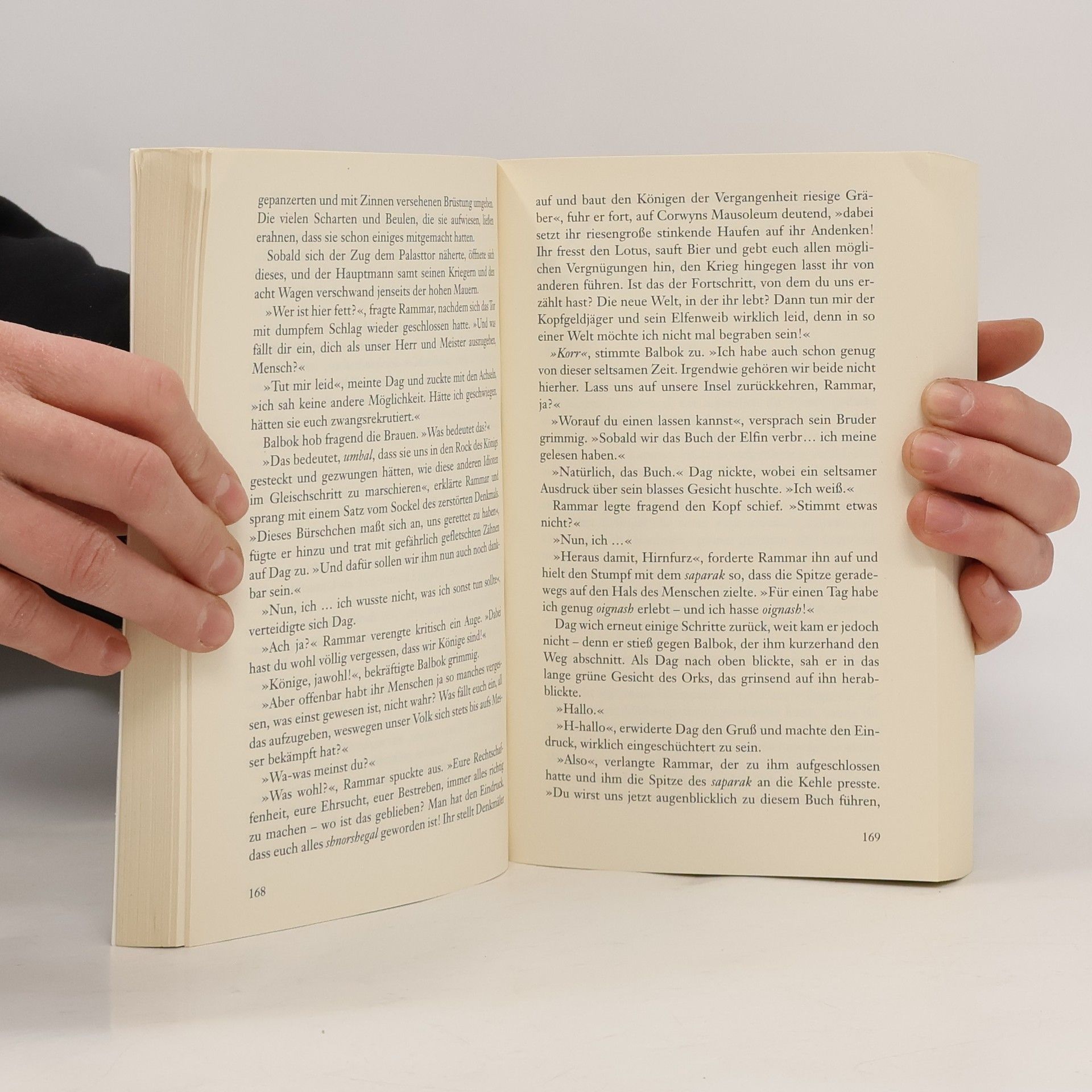 Die Ork-Brüder Balbok und Rammar sind in einem Inselreich gestrandet und geben sich dort nach Lust ihres dunklen Herzens dem Blutbier und Fressgelage hin – und der Langeweile. Doch sie ahnen nicht, dass in der Welt außerhalb der Inseln inzwischen Jahrhunderte vergangen sind. Die alten Gesetze sind außer Kraft, die Verbündeten der Orks längst tot. Ihre Heimat, die Modermark, ist zur Gnomenmark geworden, und Elfen und Zwerge liegen in einem erbitterten Krieg um die Reiche von Erdwelt. Zeit für zwei Orks, für die ein klauenfester Streit ebenso erstrebenswert ist wie die Weltherrschaft ...