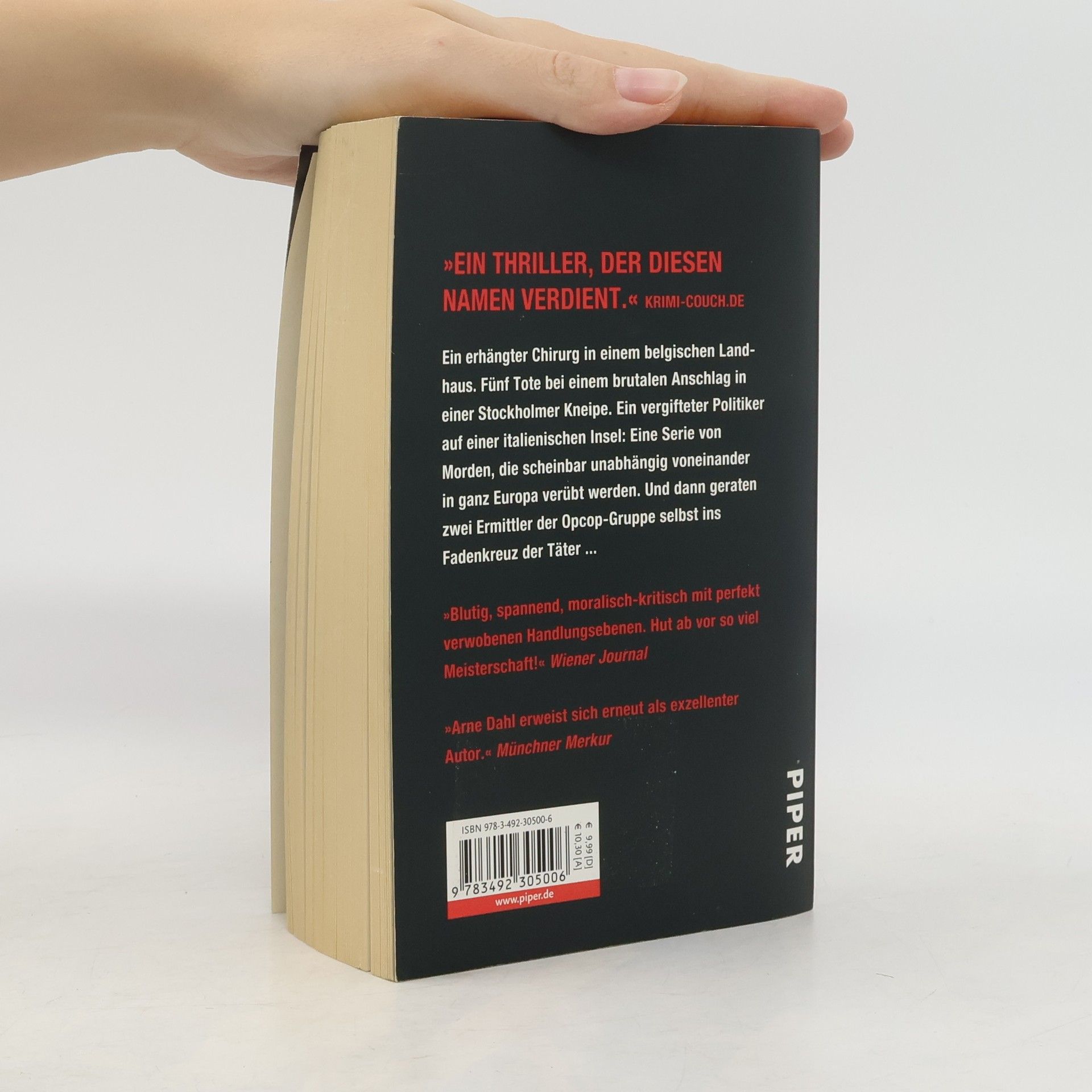 Ein erhängter Chirurg in einem belgischen Landhaus. Fünf Tote bei einem brutalen Anschlag in einer Stockholmer Kneipe. Ein vergifteter Politiker auf einer italienischen Insel: Eine Serie von Morden, die scheinbar unabhängig voneinander in ganz Europa verübt werden. Und dann geraten zwei Ermittler der Opcop-Gruppe selbst ins Fadenkreuz der Täter ...