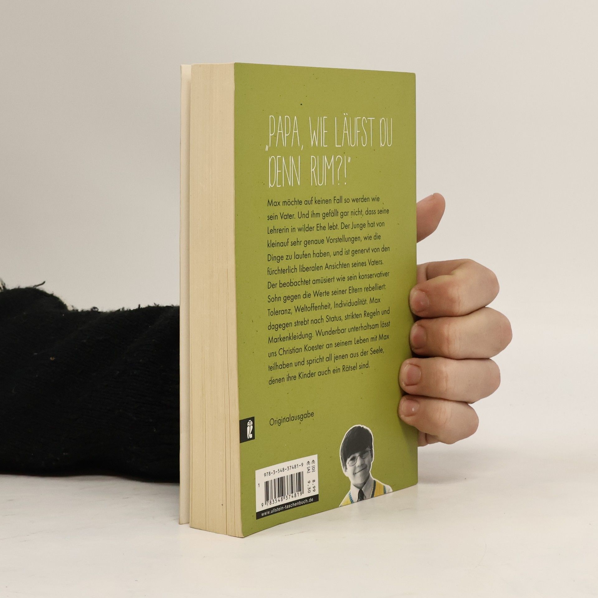 Max möchte um keinen Preis den Papstbesuch in Berlin verpassen. Und ihm gefällt gar nicht, dass seine Lehrerin in wilder Ehe lebt. Der Zwölfjährige hat sehr genaue Wertvorstellungen und ist genervt von der fürchterlich grünen Einstellung seines Vaters. Der beobachtet amüsiert wie sein konservativer Sohn gegen die Werte der Eltern rebelliert: Toleranz, Weltoffenheit, Nachhaltigkeit. Max dagegen strebt nach Sicherheit, Abgrenzung und einem Burberry-Schal. Wunderbar unterhaltsam lässt uns Christian Koester an seinem Leben mit Max teilhaben und spricht all jenen aus der Seele, denen ihre Kinder auch ein Rätsel sind.