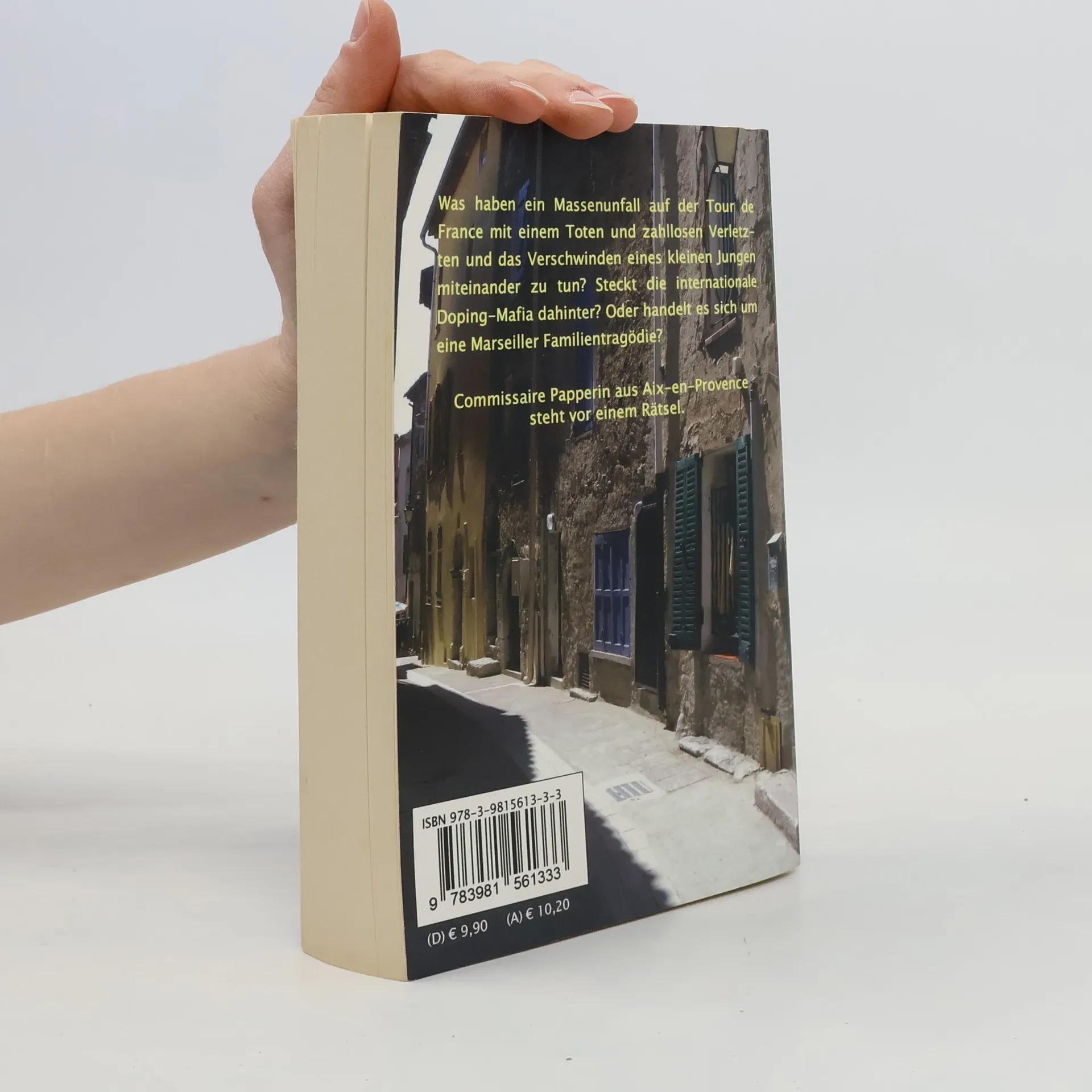 Die Tour de France führt durch das idyllische provenzalische Städtchen Correns. Mitten im Gedränge des Hauptfelds kippt ein Fahrer von seiner Rennmaschine und verursacht einen Massensturz. Das Loch in seinem Rücken stammt von der Kugel aus einem Jagdgewehr. Im Tumult verschwindet aus der Menge der Schaulustigen ein Kind. Kidnapping und ein heimtückischer Mord am gleichen Tag – kann das Zufall sein? Commissaire Papparin gerät ins Schwitzen. Nicht nur wegen der provenzalischen Hitze: Mit der Dopingmafia ist nicht zu Spaßen ist. Die verzweifelte Mutter des verschwundenen Kindes ist die überaus attraktive und von ihm verehrte Schauspielern Nicole de Laterre.