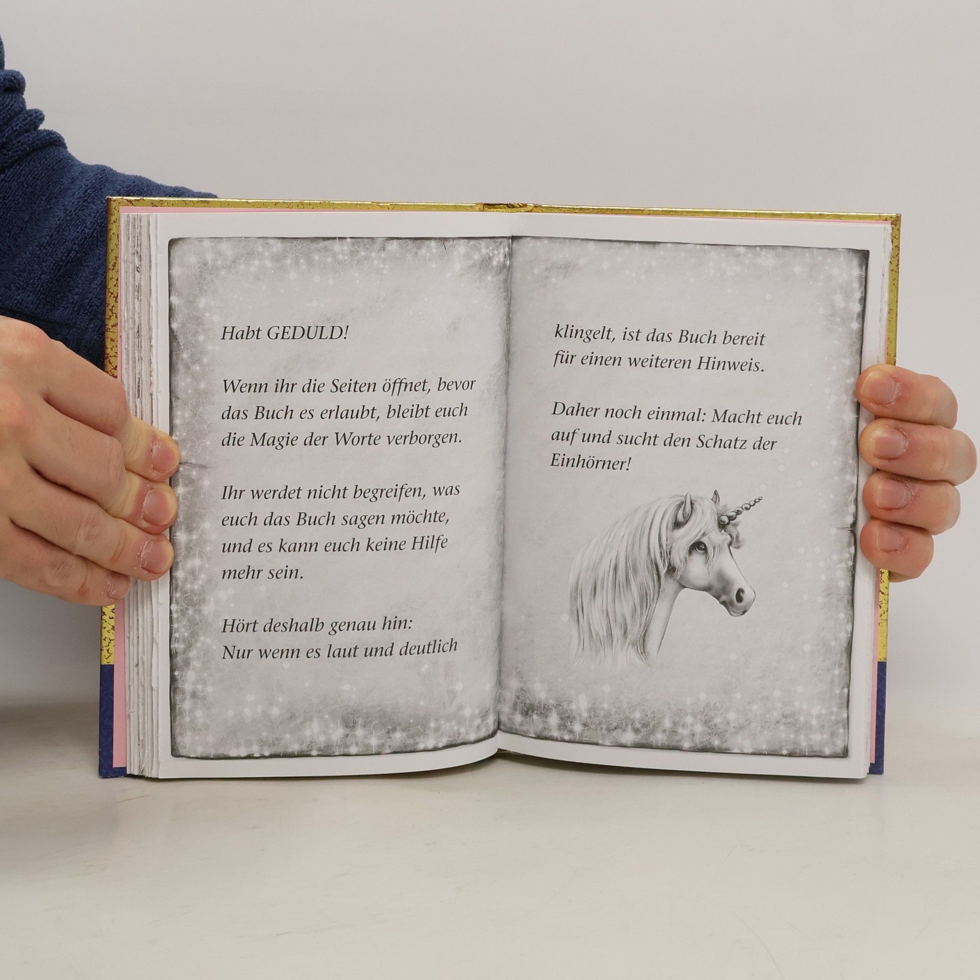 Laura erhält einen geheimen Auftrag: Sie und Sternenschweif sollen ein altes Buch finden. Noch ahnen die beiden nicht, wohin es sie führen wird: zum Schatz der Einhörner! Zusammen mit Laura und Sternenschweif öffnen die Leserinnen die versiegelten Seiten und sind hautnah dabei, wenn es immer spannender wird auf der Suche nach dem magischen Schatz. In den verschlossenen Seiten verstecken sich zauberhafte Rätsel, Bilder und Aufgaben.